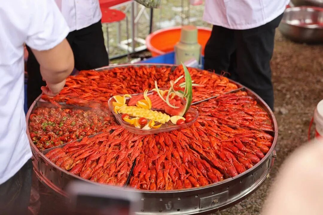 一边尽情享受啤酒、小龙虾盛宴