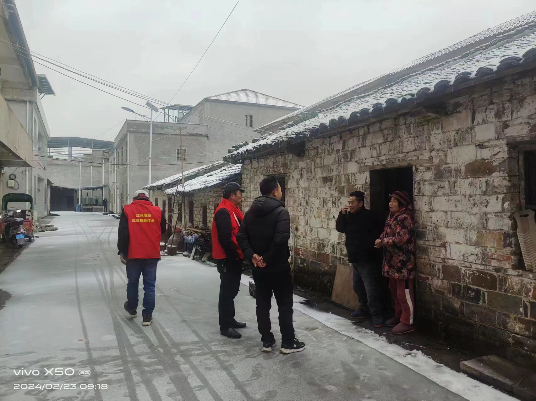 为保障人民群众安全出行,2月23日,枫林镇漆坊村党员干部以及驻村工作队采取防范应对措施,为广大群众出行安全保驾护航。 迎着漫天飞雪,“红马甲”还走访入户慰问独居、困难群众,查看住房安全、取暖情况,并详细讲解了 安全用电、安全出行以及家庭防冻等安全防范知识。 通讯员:谈灿灿 责编:明珊 审核:黄健