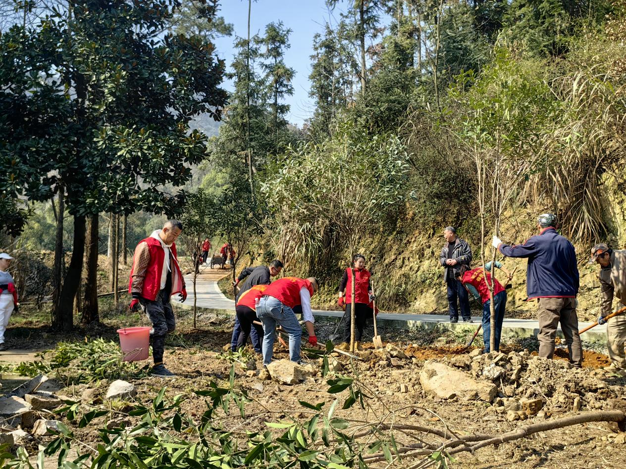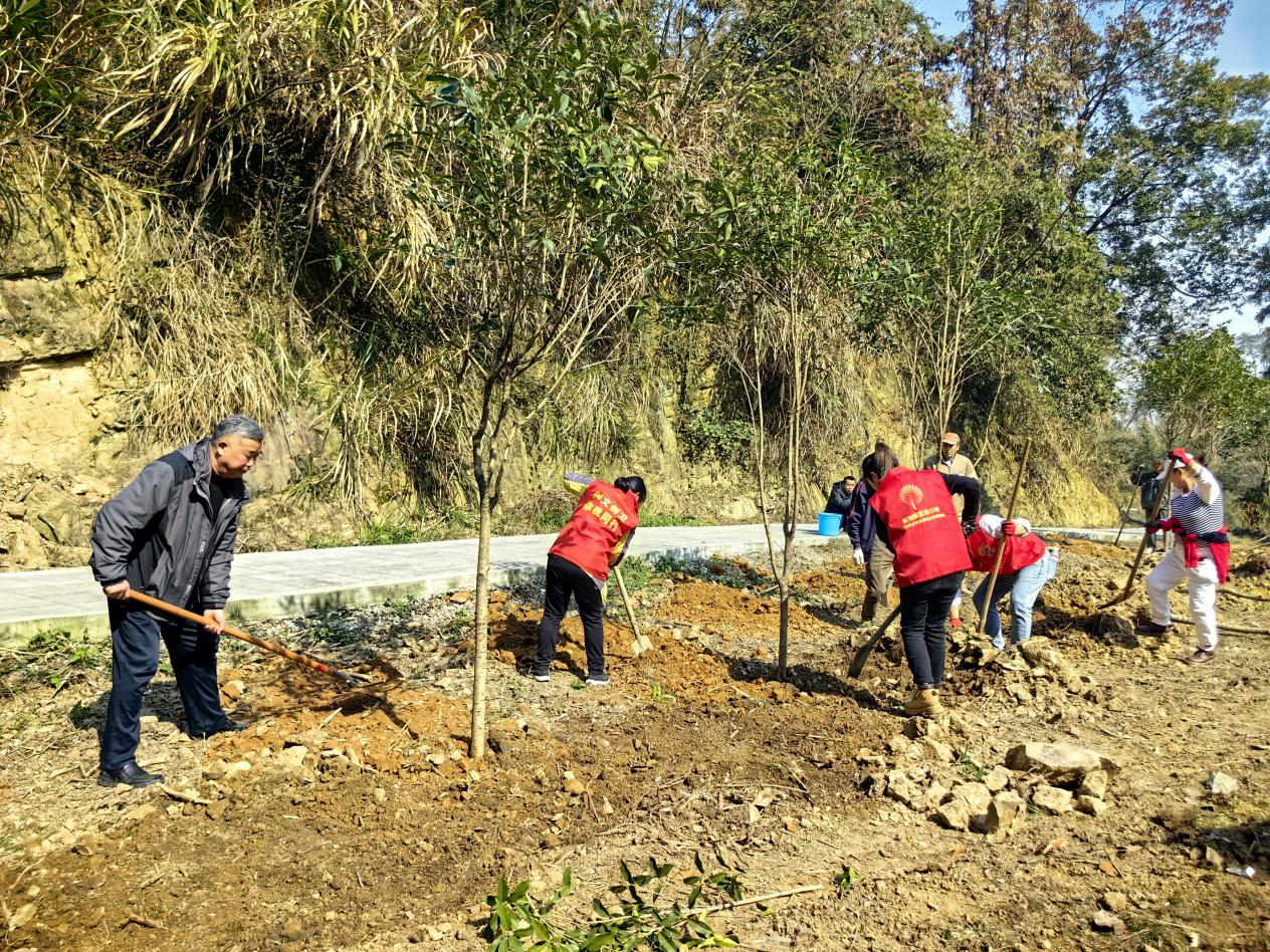 草长莺飞、春意渐浓。3月12日上午,富池镇富池口村组织村组干部、党员志愿者开展义务植树活动。
