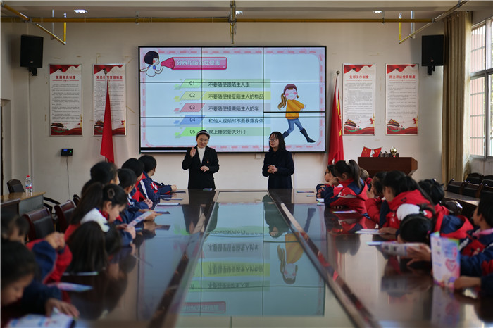 “同学们要有意识地爱护自己的身体,禁止隐私部位被人触碰。”杨婷和该校老师相互配合衔接,结合实际案例,围绕如何分辨防范性侵害、遭遇性侵害时怎么办、遭遇后又该怎么做等方面细致讲解,每说一句,该校老师就用手语翻译一句。学生们看在眼里、记在心里,围着杨婷热烈地进行交流互动。