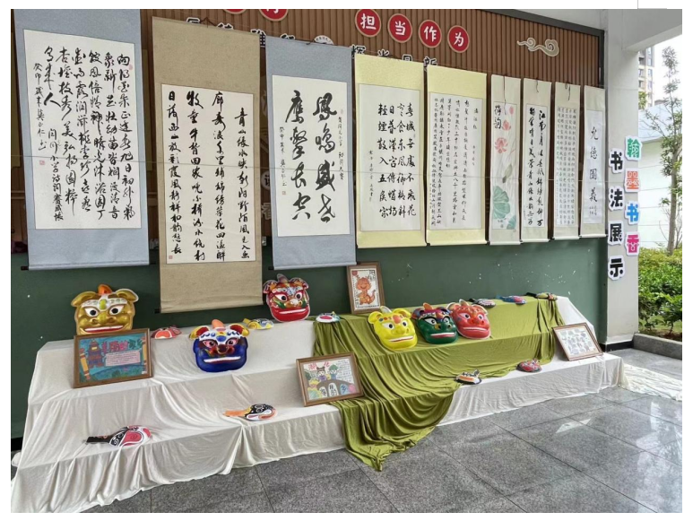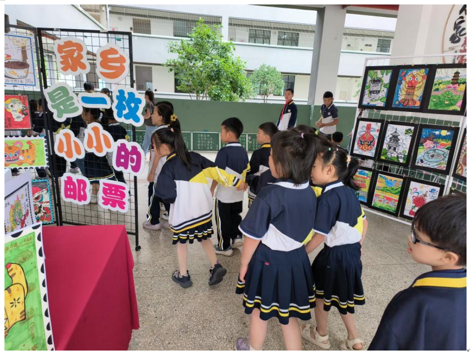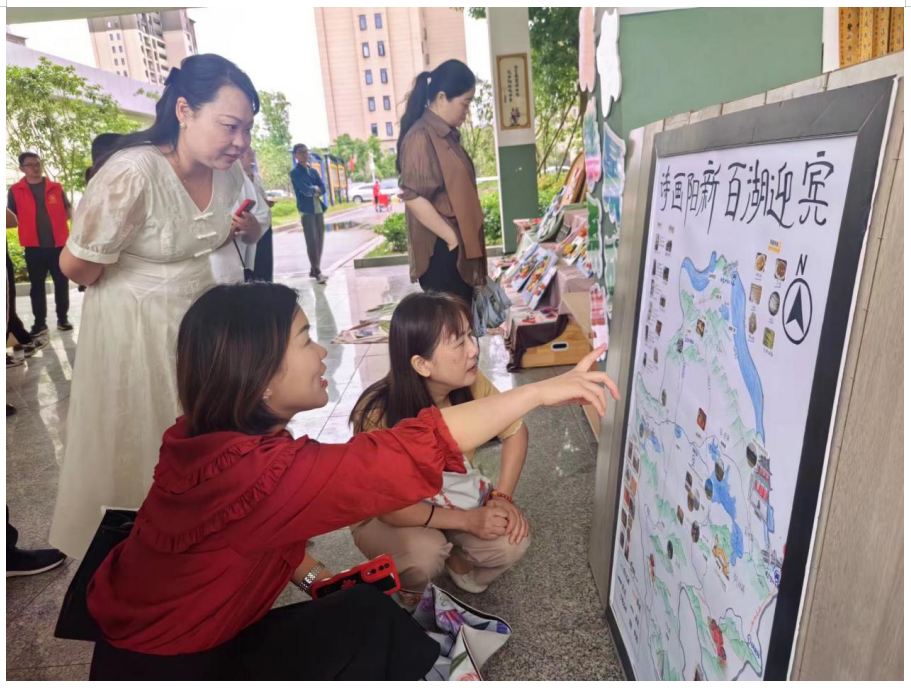 在室外,“悦读家乡”的游园展以阳新的特色非遗、景点、美食为灵感,分六大主题进行布展,分别为“家乡是一枚小小的邮票”“富有特色的阳新美食美景”“走向国际的‘鱼米之乡’”“技艺精湛的手工作品”“经久不衰的非物质文化遗产”“ 翰墨书香——书法展”。