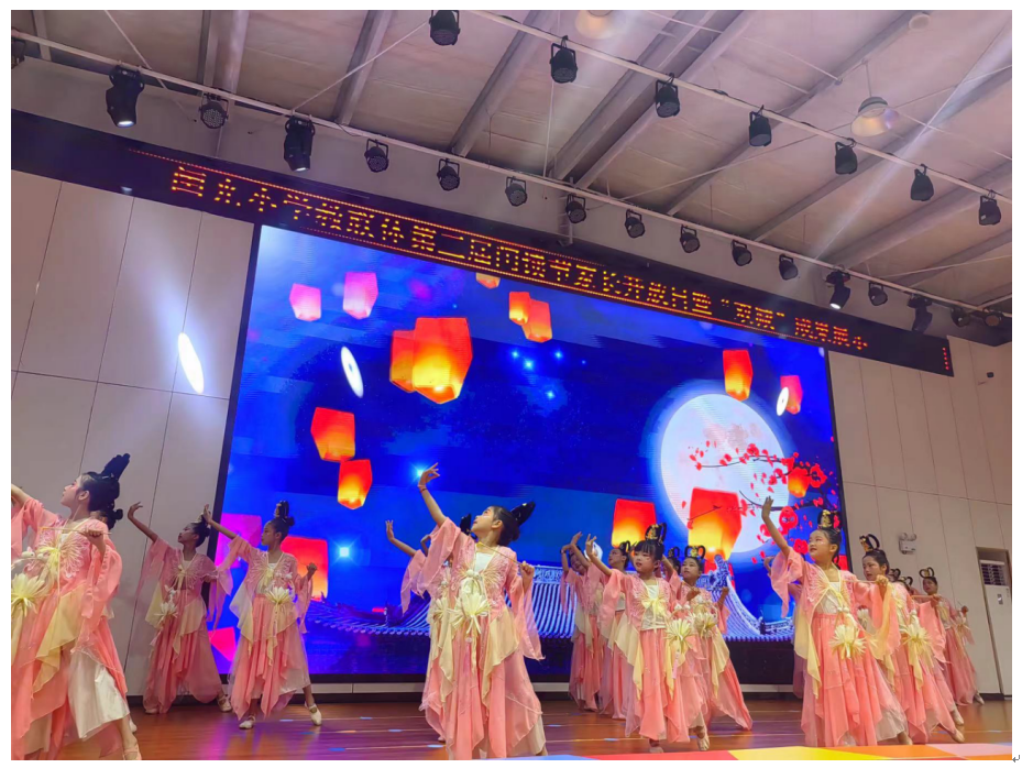 在内场,县闰光小学舞蹈社团的孩子们用一曲《花灯落城》拉开活动第一篇章。