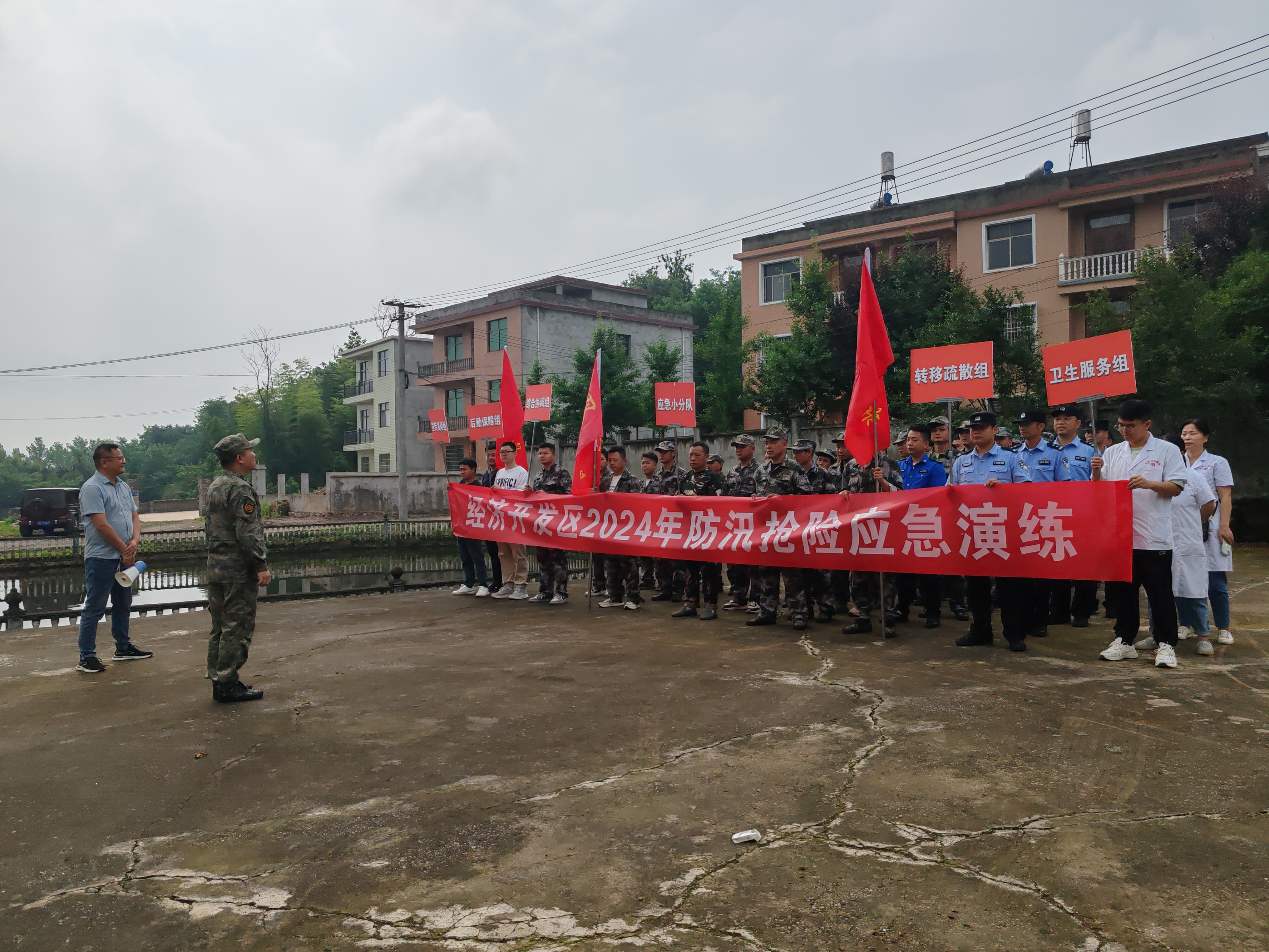 此次演练设置综合协调组、宣传发动组、后勤保障组、卫生服务组、转移疏散组、应急小分队等6个工作组,以持续强降雨导致荻田河陈秀段发生两处管涌险情为演练背景,要求县经济开发区指挥部立即启动防汛应急预案,按照防汛预警、抢险处置、群众转移、医疗救助四个场景进行快速组织反应。