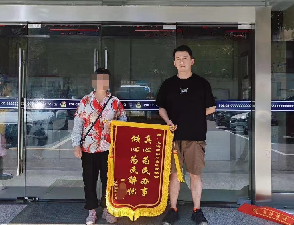 这不,7月4日下午2时30分许,潘女士再次来到派出所,将一面锦旗送到唐宗宜的手中,对民警认真负责、热情为民的工作态度表示衷心感谢。