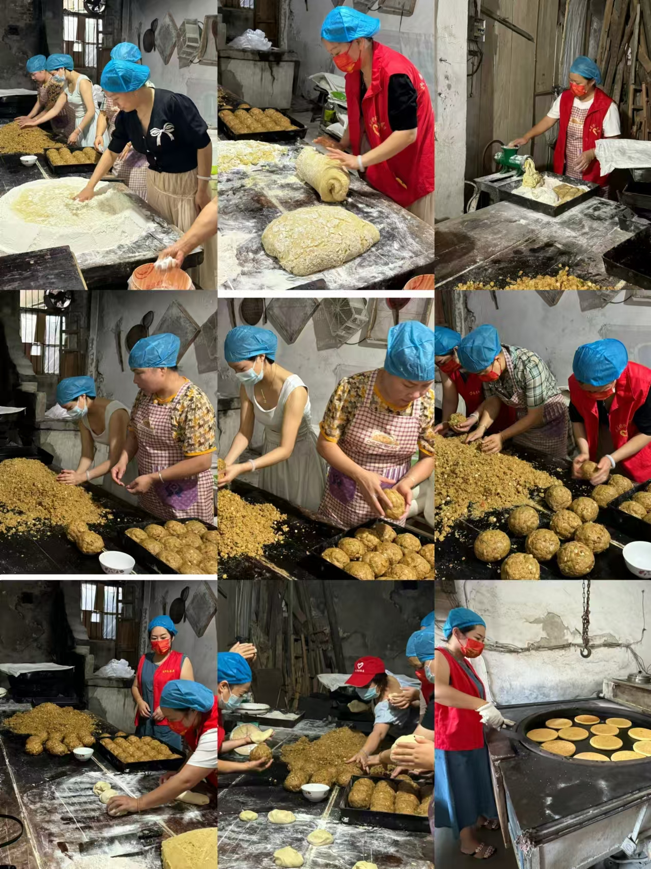 活动伊始,社区工作人员在烘焙师傅的指导下手工制作老一辈人喜爱的传统芝麻月饼,和面、制作面团、制作馅料、包馅、成型、烘烤,每一步都认真细致,饱含对社区老人的关爱与祝福。