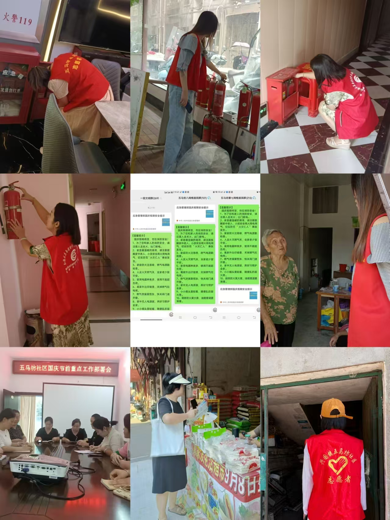 天刚破晓,社区志愿者们就已经忙碌起来,他们身穿统一的红色马甲,手持节日安全宣传册,分成多个小组,对社区内的公共设施、居民楼、商铺等进行全面而细致的安全隐患排查。从电线老化到消防通道是否畅通,从燃气管道的安全检查到消防器械是否损坏,每一处细节都不放过。