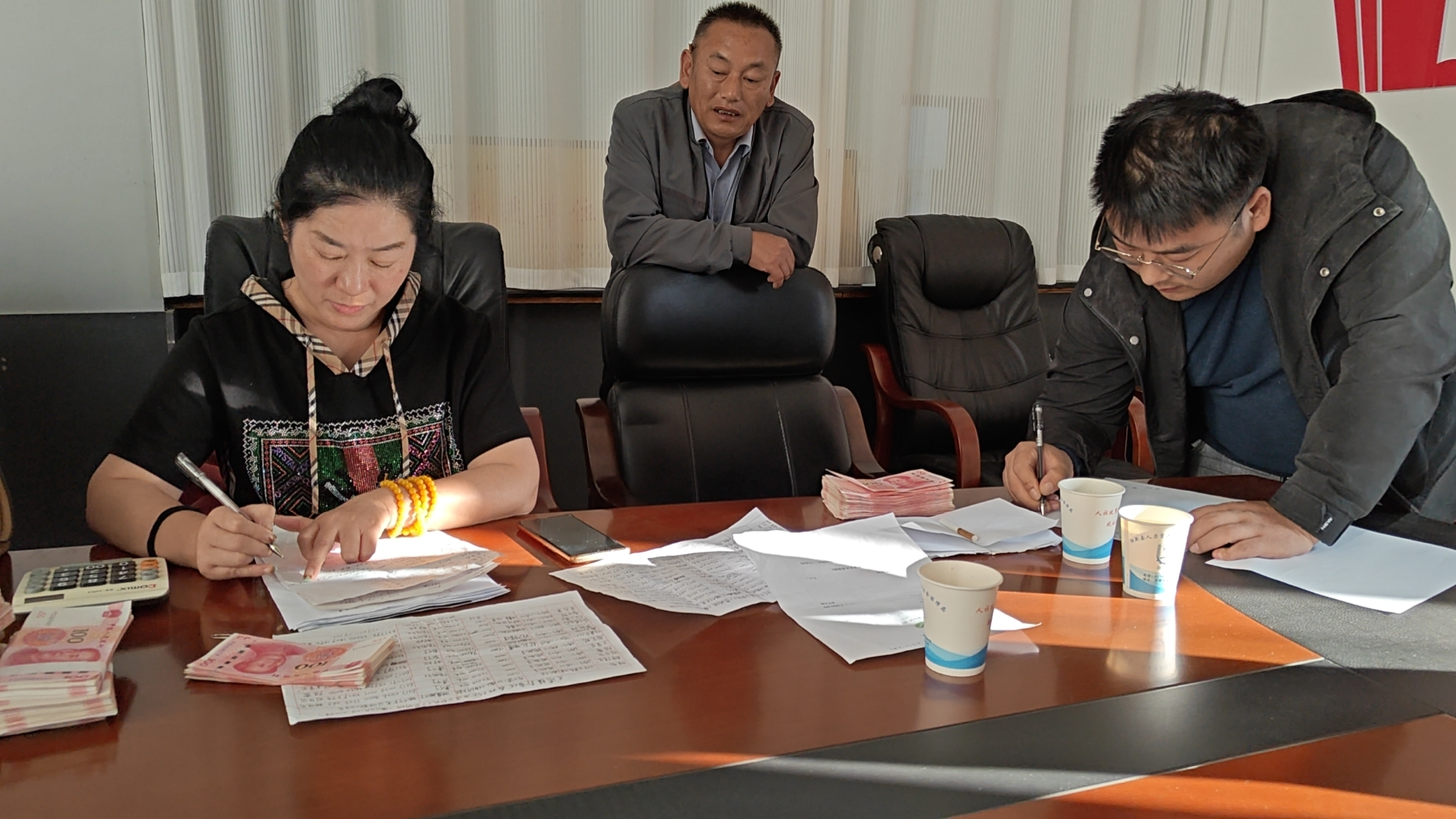 发薪现场,37多万元现金整齐摆放在办公桌上,委派律师亲点数目,县劳动保障服务中心三名工作人员仔细对照工资表,查看身份证,让在场群众逐个签字领薪。
