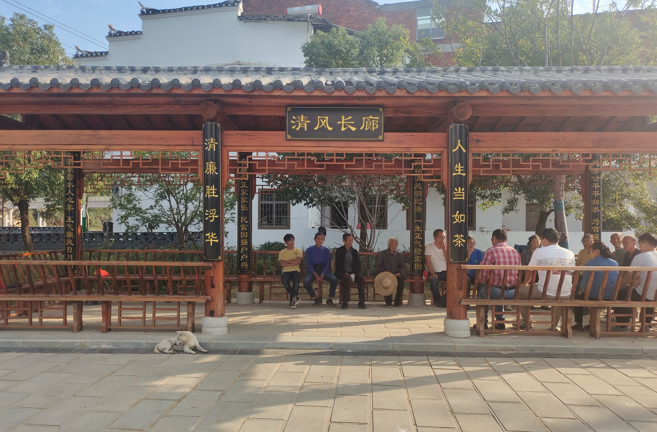老乡们你一言我一语,清风长廊里热闹非凡。