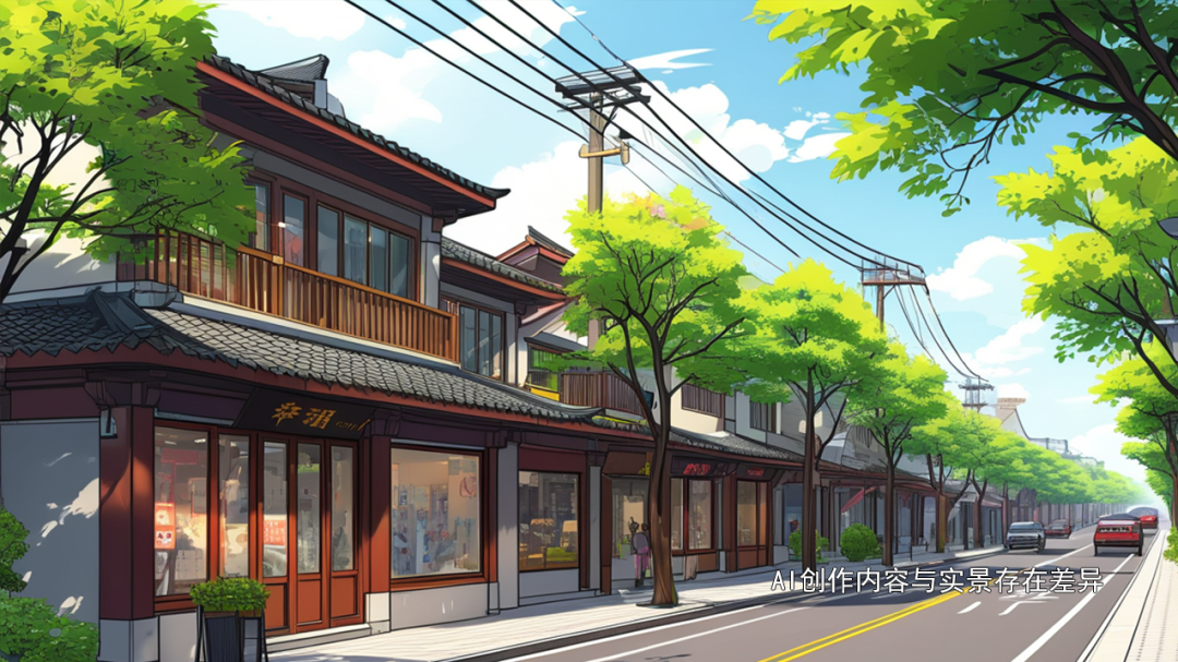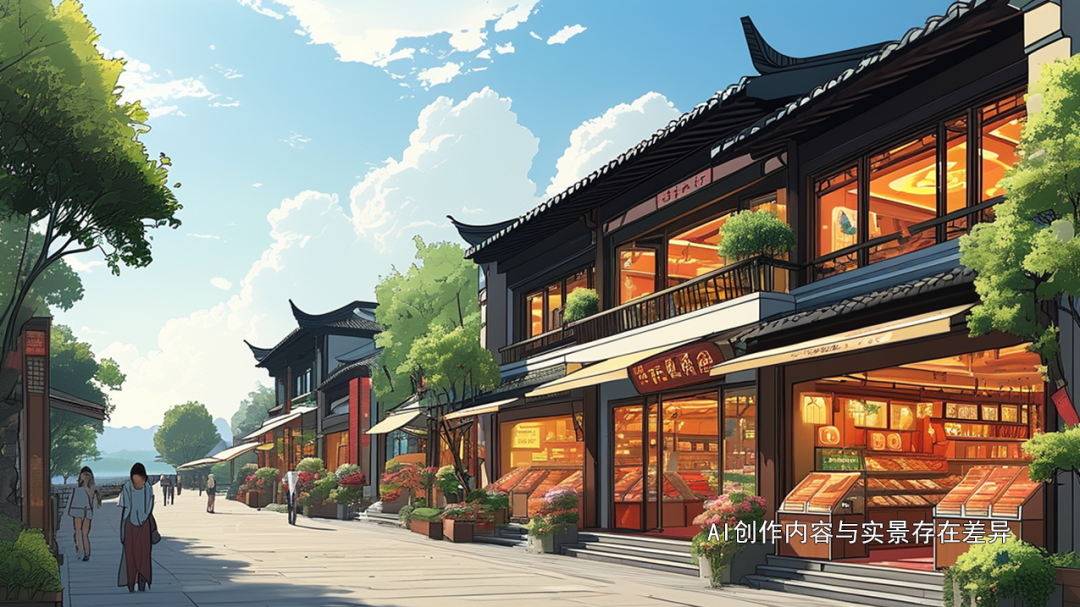 随着日光的倾洒,东坡外滩在AI的画笔下勾勒出黄州现代与古老交织的独特韵味。