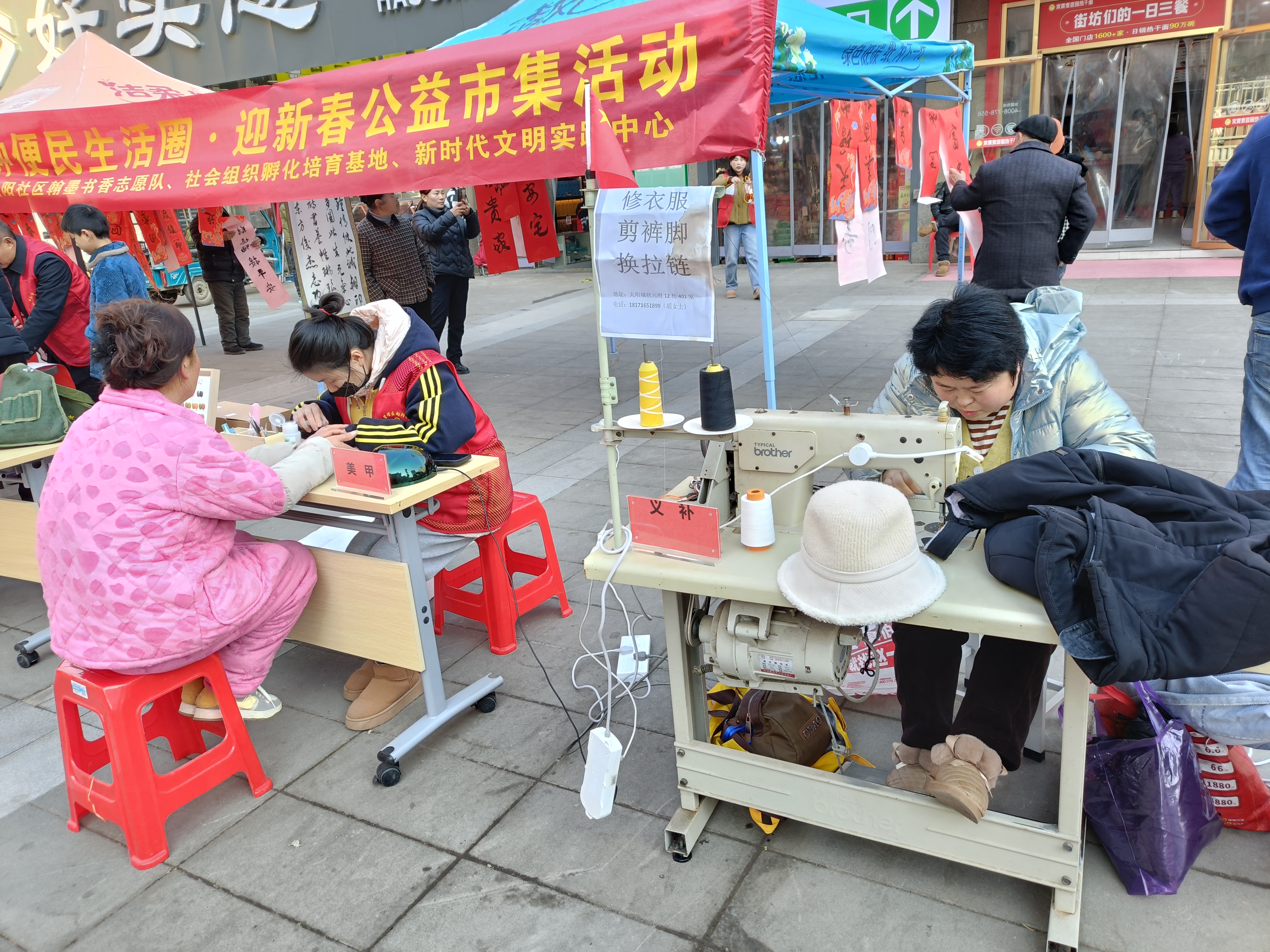 义补摊位前,志愿者们专注地缝补着衣物上的破洞和裂缝。他们飞针走线,手法娴熟。不一会儿,破损的地方就被修补得几乎看不出来痕迹。居民们对志愿者的精湛技艺和无私奉献表示由衷感谢。