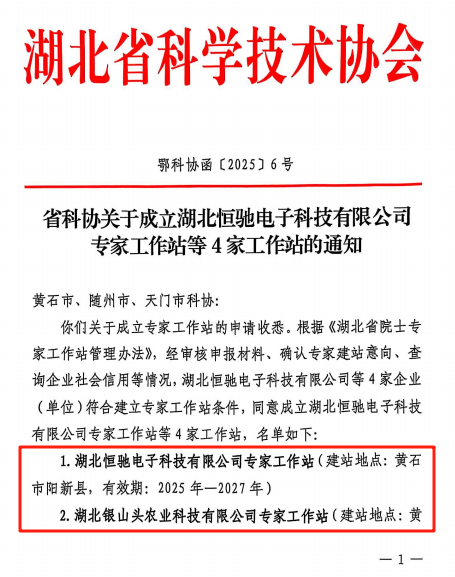 日前,从省科协传来喜讯,阳新县的湖北恒驰电子科技有限公司、湖北银山头农业科技有限公司获批成立省级专家工作站。