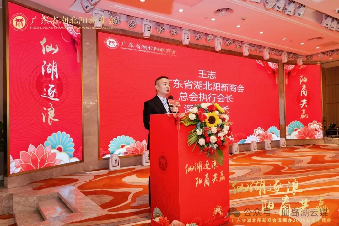 团拜会开始,广东湖北阳新商会总会执行会长兼深圳办会长王志代表活动主办方发表了重要致辞。王志执行会长深情的讲道:新春肇启,鹏程迎晖!值此春暖花开之际,我们相聚鹏城,举办2025“仙湖逐浪,阳商共赢”新春团拜会!共话桑梓情,同启新征途。我谨代表广东湖北阳新商会深圳办,向在座每一位奋斗在改革开放前沿的同乡、嘉宾和领导,致以最热烈的欢迎和最诚挚的新春祝福!今夜,鹏城的灯火映照着阳新的月光,富河的涟漪荡漾着游子的乡情。我们虽身在他乡,但血脉里流淌着仙岛湖的灵秀,骨子里镌刻着红色烈士县的坚韧。无论走得多远,阳新的山水始终是我们精神的灯塔,乡音的韵律永远是我们心灵的归途。此刻,让我们以一杯故乡的富川红茶,敬山河故人;以一曲水韵仙岛湖,唤血脉深情!同时王志会长总结了2024年工作,并作2025深圳办的发展规划。同时做了几点分享,以资共勉!1.政策的支持和鼓励,带来跨境、出海的新机遇;用全球的视野发展企业。2.以deepseek人工智能大模型的新质生产力,席卷全球。所有的行业用AI+都可以重新再做一遍,带来了无数的新机遇。3.2025年2月17日。中央民营企业座谈会,总书记亲自出席,让中国民营企业的发展充满了机遇,也让民营企业家们坚定了信心。4.当下虽然经济环境不是很好,梦虽遥,追则能达。愿虽坚,持则可圆。最后送上祝福!让我们共祝:山河无恙,人间皆安!阳商腾达,桑梓长青!祝福所有的家人:多喜乐,长安宁!所愿皆所成。