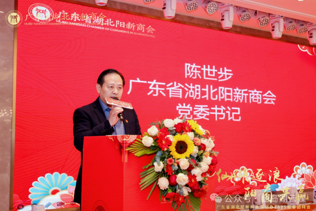 接着,深圳办党总支书记张金钟进行了致辞,感谢商会家人的付出,我们以党的二十大精神为指引,擦亮“党建强会”品牌。最后,广东省湖北阳新商会党委书记陈世步和会长向毅先后发表了重要讲话。陈世步书记讲道:我们阳商扎根广东热土,勇力潮头,为湾区经济注入“阳新力量”。党建引领凝聚发展合力!让党旗在商会一线高高飘扬。愿祖国繁荣昌盛,国泰民安!最后,向毅会长总结到,新征程,商会当好“三大桥梁”兴业桥梁、乡情桥梁、红色桥梁。也很荣幸我们广东湖北阳新商会荣获大湾区五十强商协会!感谢大家付出!祝福所有家人新春吉祥。
