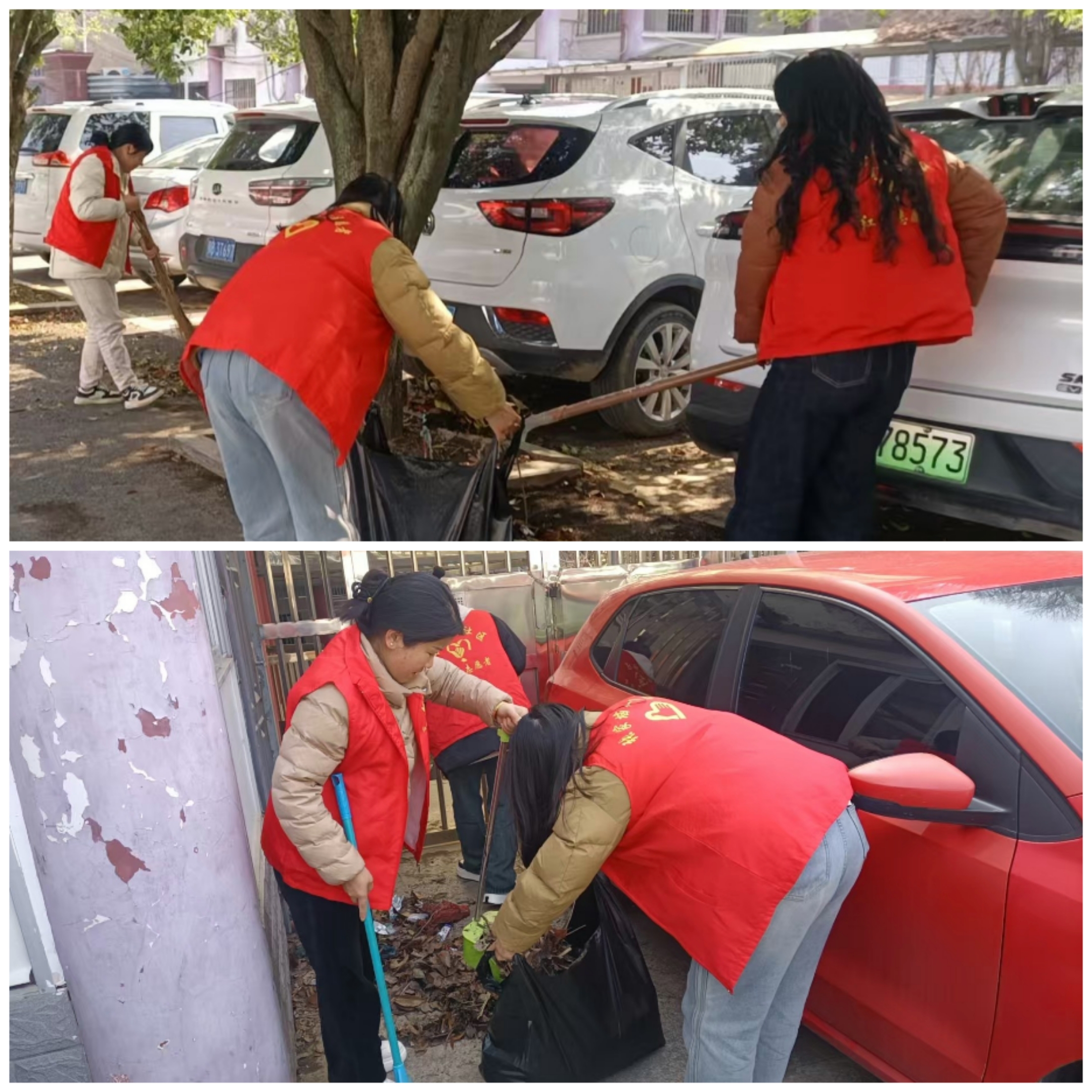 活动现场,社区红星巾帼志愿者们统一身着红马甲,化身家园的“美容师”,手持扫帚、夹子、铲子等清洁工具,深入辖区的各个角落,认真清理背街小巷内的垃圾、枯叶等废弃物。大家齐心协力,分工明确,干劲十足,不放过任何一处卫生死角。有的负责清扫,有的负责将垃圾入袋,有的负责搬运垃圾袋,一件件红马甲穿梭在辖区的各个角落,形成了一道亮丽的风景线。