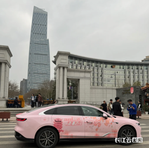 这些车身贴有樱花装饰,印有“外地游客免费乘坐”标识,车窗前有“有客”、“空车”两种标牌。车内备有赏樱指南、赏樱地图、雨伞等物资,主打一个周到贴心。乘车游客还有机会领取樱花季限定伴手礼,没错!免费接送还送礼,热烈欢迎来武汉玩的你。