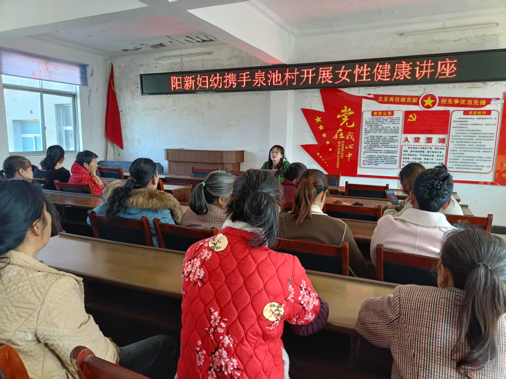 3月20日上午,阳新县妇幼保健院走进泉池村开展女性健康知识宣讲活动。 讲座中,阳新县妇幼保健院妇科成凤主任用通俗易懂的语言向泉池村妇女群众讲授了女性常见的妇科疾病,并针对“宫颈癌”“阴道炎”等知识,根据不同的年龄阶段分别向大家讲解了预防办法,提醒现场女性要注意保持良好心情、适度运动,倡导健康向上的生活方式。 此次讲座,进一步提升了在场女性对妇科疾病的预防水平。 通讯员:董莎 责编:高薇 审核:朱兰青