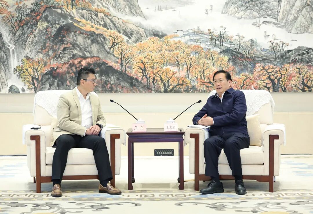 4月25日上午,省委书记、省人大常委会主任王忠林在武汉与顺丰控股股份有限公司董事长兼总经理王卫座谈交流。