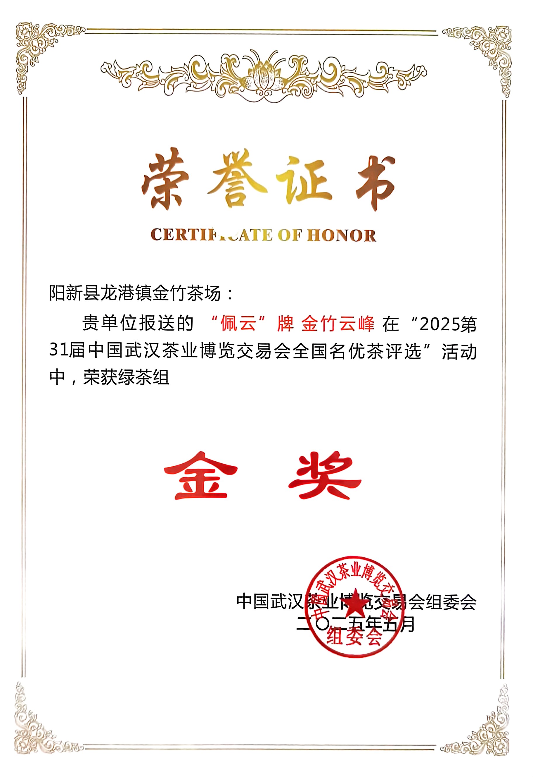 20日,从阳新县特产服务中心获悉,在9日至11日举行的第31届中国武汉茶业博览交易会上,阳新县龙港镇金竹茶场、阳新县农发茶业有限公司、湖北绿弘园艺有限公司、湖北华胜茶叶有限公司、阳新县常乐种植专业合作社选送的茶品从众多参赛作品中脱颖而出,一举斩获5个金奖。阳新县茶叶协会因在组织参展、推动行业交流中表现突出,荣获优秀组织奖。