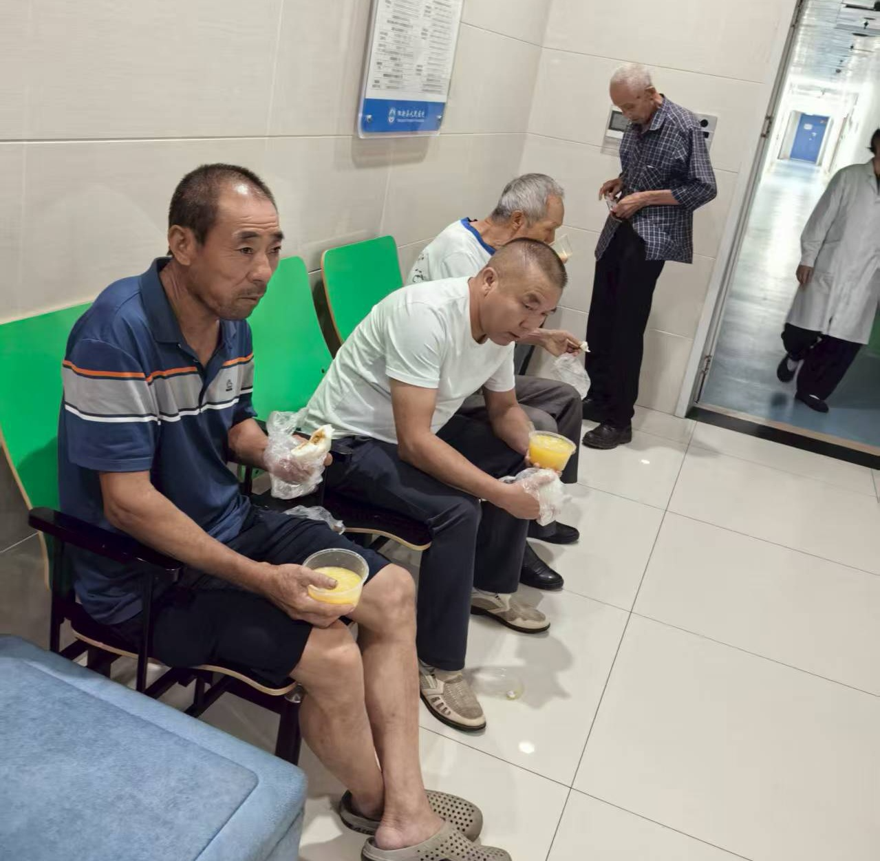 肝胆B超和肝功能等检查项目需空腹进行,考虑到绝大多数病人年老体弱,为避免受检者因饥饿过度引起低血糖等生理不适反应,血防服务中心安排专职工作人员为病人准备了充足免费的营养早餐,确保每位病人检查结束后能够及时在专用休息区温暖用餐。