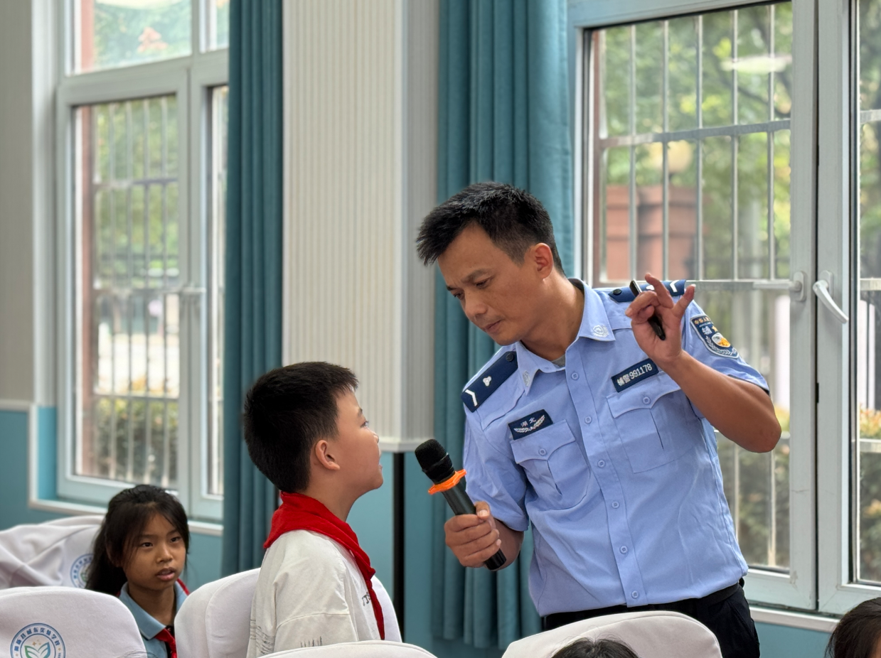 活动中,学校法治副校长、县人民法院刑庭法官张幽霞结合小学生的年龄特点和认知能力,通过真实案例以案释法,讲解与未成年人相关的法律知识,分析违法犯罪行为的成因与后果,并传授预防侵害与自我保护的有效方法。县交管大队民警则通过PPT和交通事故案例视频,揭示了不遵守交通规的危害,详细讲解安全出行常识与“一盔一带”重要性,引导学生“知危险、会避险”,自觉遵守交通规则,争做文明交通的实践者。
