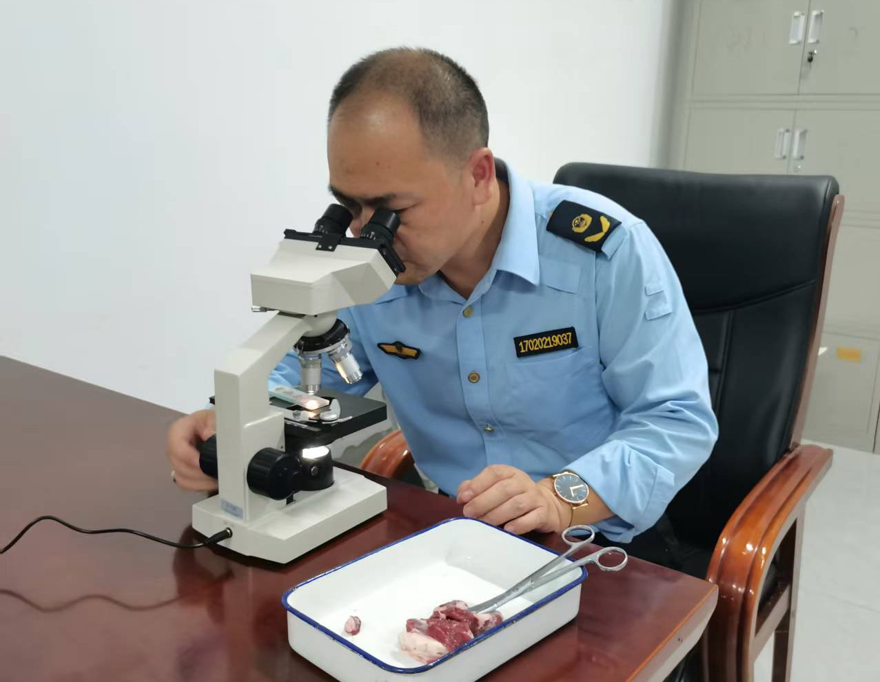 在车间的检疫检验区,一线检疫人员的专注身影格外引人注目。他们手持检验工具,目光紧紧锁定传送带上的畜禽胴体,从皮肤色泽到内脏形态,每一处细节都仔细核查,凭借专业技术精准识别疫病风险。正是这样一群“隐形守护者”,用严谨态度将隐患阻挡在餐桌之外,为群众饮食安全筑起坚实屏障。
