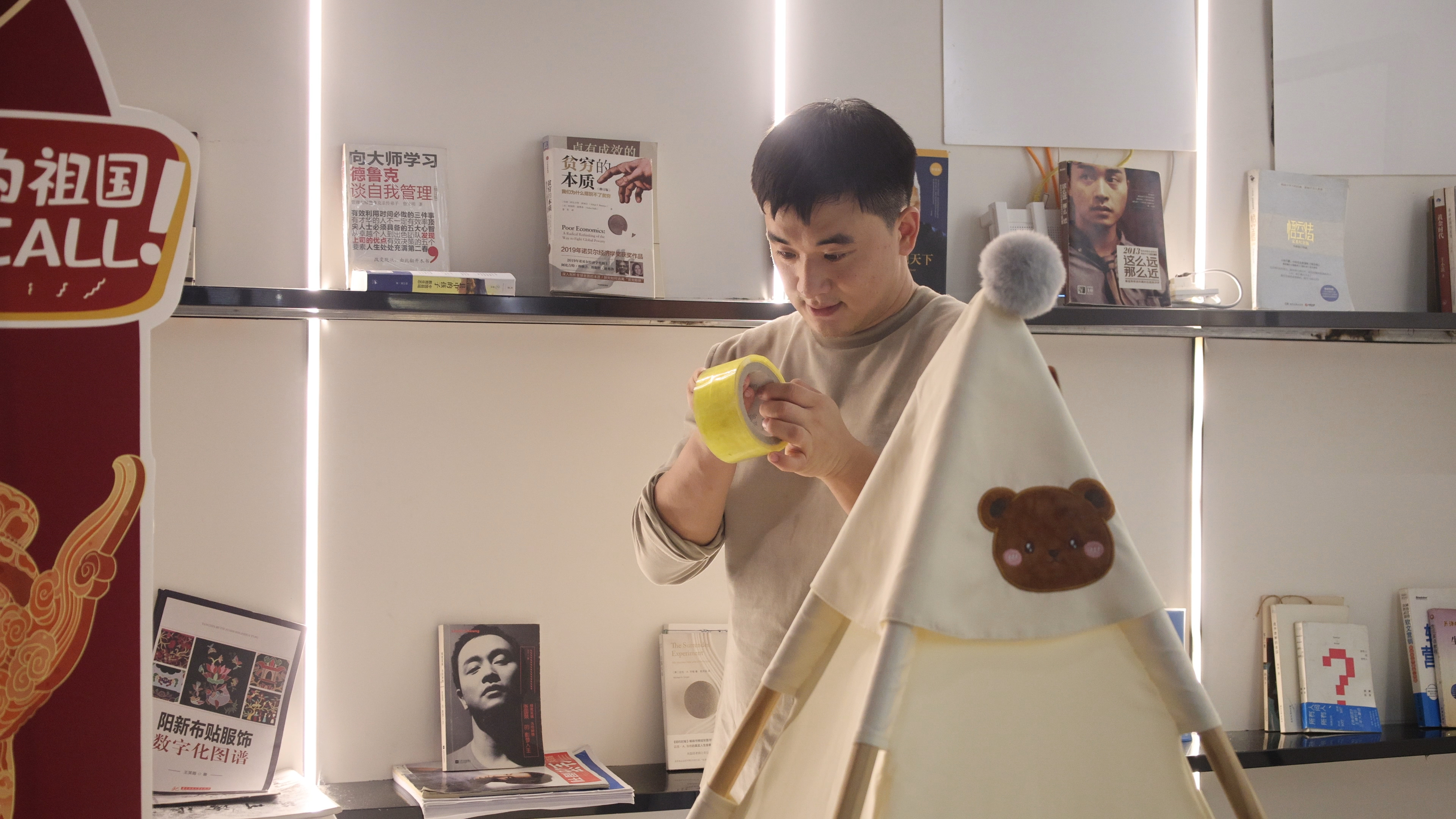 从建筑设计到施工装修,肖绪雄倾注了大量心血。民宿设计讲究“调调”,为了追求理想中的“调调”,肖绪雄特意请来做包工头的舅舅帮忙,手工打造了窗套、书架墙等特色装饰。很多家人和乡亲都伸出了援手,从选址、到建设,再到运营,肖绪雄一遍遍感受着在老家的温暖。