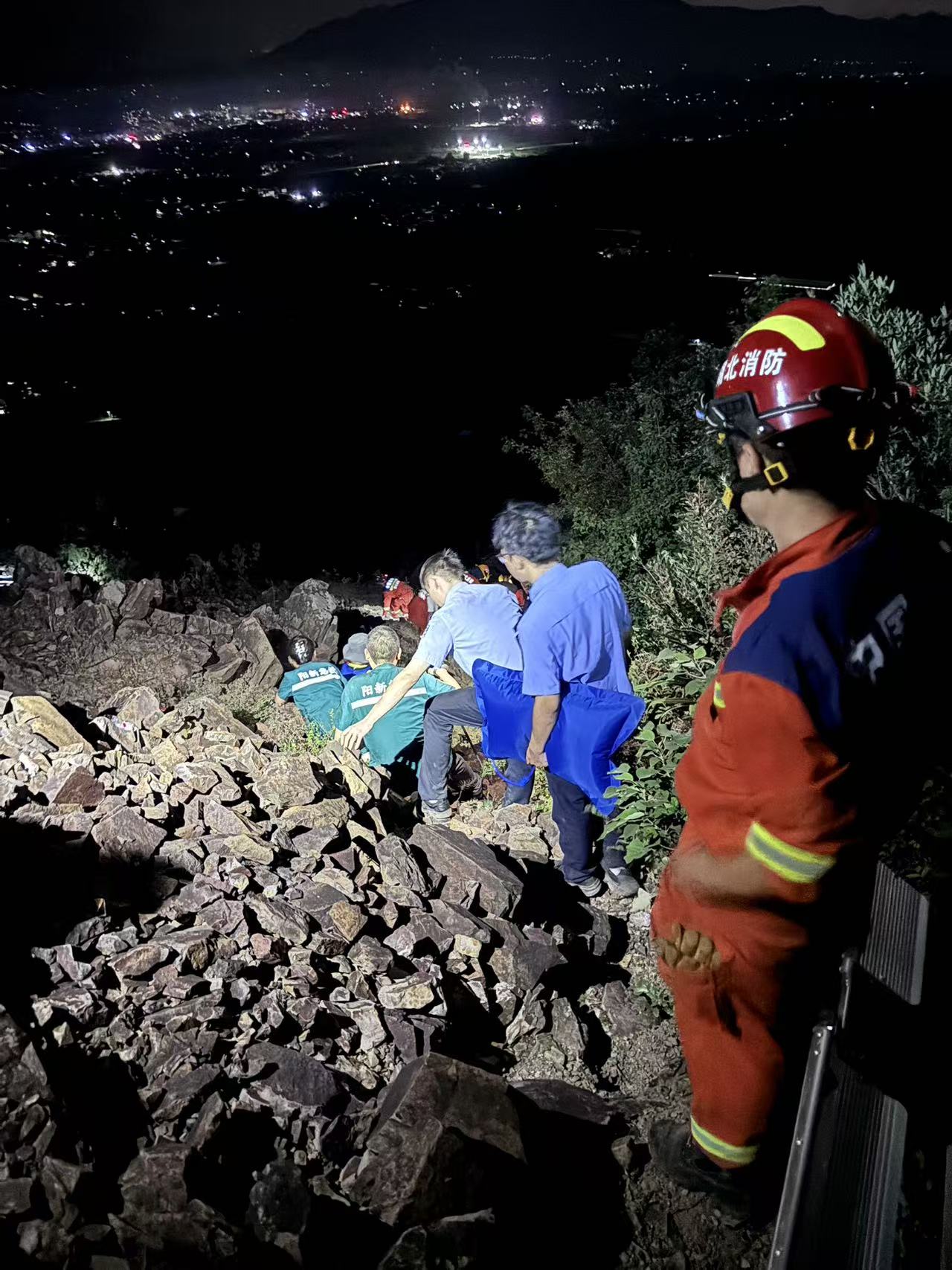 而那条让鞋子都“投降”的下山路,是比上山更为艰难的考验。画面切换到当晚漆黑的山林中。在消防与公安人员的全力协作下,救援队伍用担架抬着180斤左右刚刚恢复意识但仍极度虚弱的患者,开始了长达七个多小时的艰难转运。最陡峭处,救援人员只能跪在岩石上,用绳索将担架一寸一寸地向下缓降。每一步,都是对平衡与力量的极限挑战;每一滴汗水,都混合着对生命的敬畏与坚持。这双鞋走过的,正是这条用意志铺就的生命通道。22时30分,救援队伍终于成功将患者转运至山脚公路,紧急送往附近医院进一步治疗。