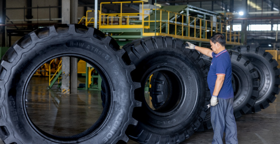 据企业工程师曾志勇介绍,生产线采用先进的子午线成型工艺,生产的轮胎主要适配工程类车辆和大型农用车辆,其承载能力较传统斜交轮胎提升40%,使用寿命延长80%,节油10%以上,尤其适用于丘陵山区复杂路况下的高强度作业需求,技术性能达到国内领先水平。