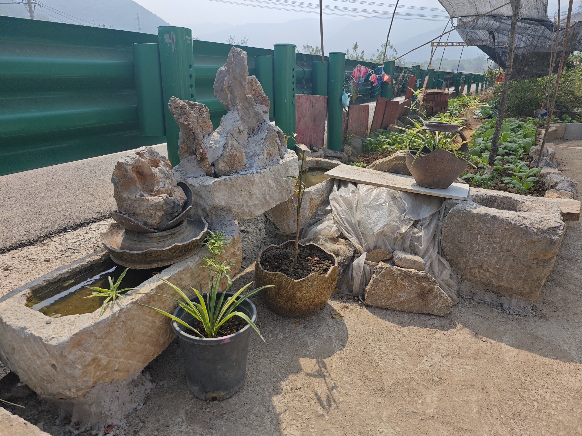 院角的景致藏满夫妻二人的匠心:青石堆叠成错落假山,旧石槽盛水养菖蒲,一旁菜园里,柯三鹏妻子正忙着打理作物,绿意蓬勃的田园风光与雅致景观交融,曾经无人问津的“杂乱角落”,如今成了村民日常驻足、路人停车观赏的“乡村打卡地”。