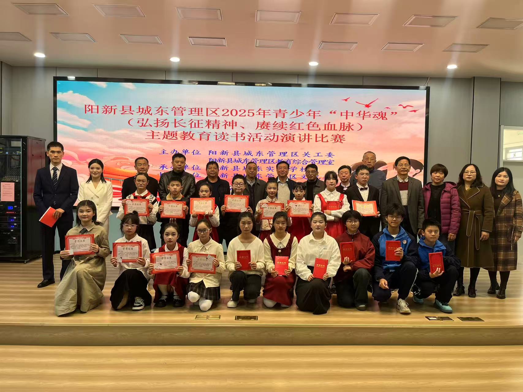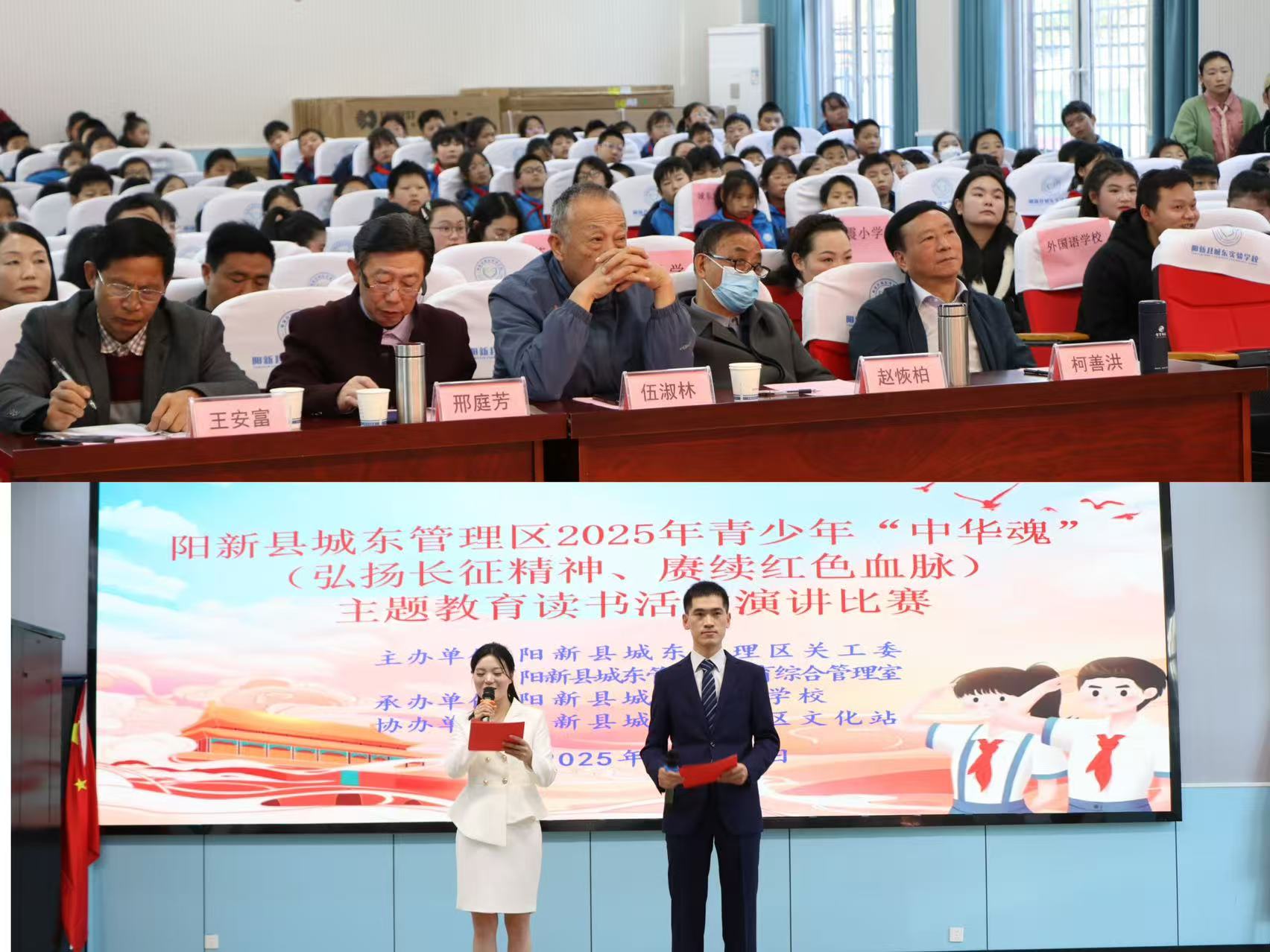 11月20日上午,由阳新县城东管理区关工委、城东管理区教育综合管理室主办,城东实验学校承办及阳新县城东管理区文化站协办的“中华魂”(弘扬长征精神、赓续红色血脉)主题教育读书活动演讲比赛圆满落幕。本次活动通过演讲与文艺展演相结合的形式,引导青少年坚定理想信念,从长征精神中汲取奋进力量,让革命精神代代相传。来自城东管理区各中小学的18名参赛选手同台竞技,其中小学组9人、初中组9人。