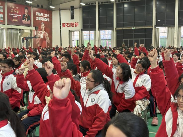 11月19日上午,阳新县实验高级中学在体育馆举行2025年高三年级期中总结会暨高考200天誓师大会。高三年级全体师生1300余人参加活动。