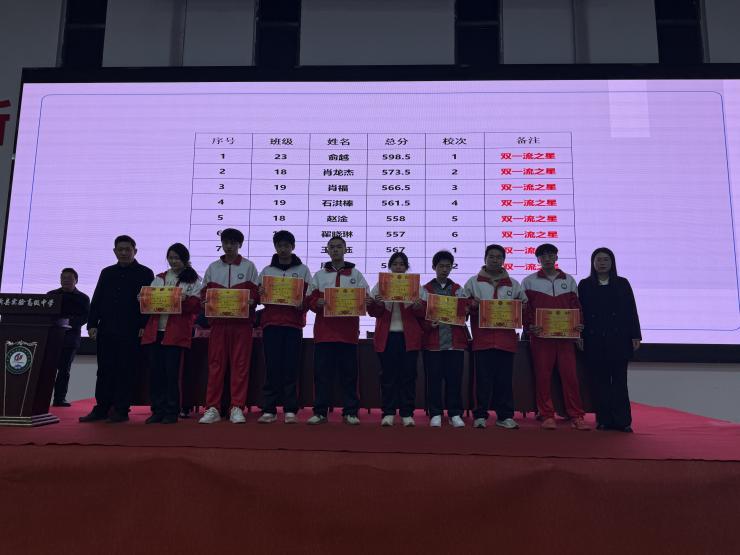 会议首先对在期中考试中取得优异成绩和显著进步的同学进行表扬。“一本之星”“双一流之星”“单科状元”……一个个闪亮的名字,一张张耀眼的奖状,是同学们日夜鏖战、辛勤耕耘的见证。他们站上领奖台,接受全体师生的掌声与喝彩。这不仅是个人的荣光,更是对“一分耕耘,一分收获”的最佳诠释,为全体同学树立了追赶的标杆,点燃了见贤思齐的奋斗火焰。