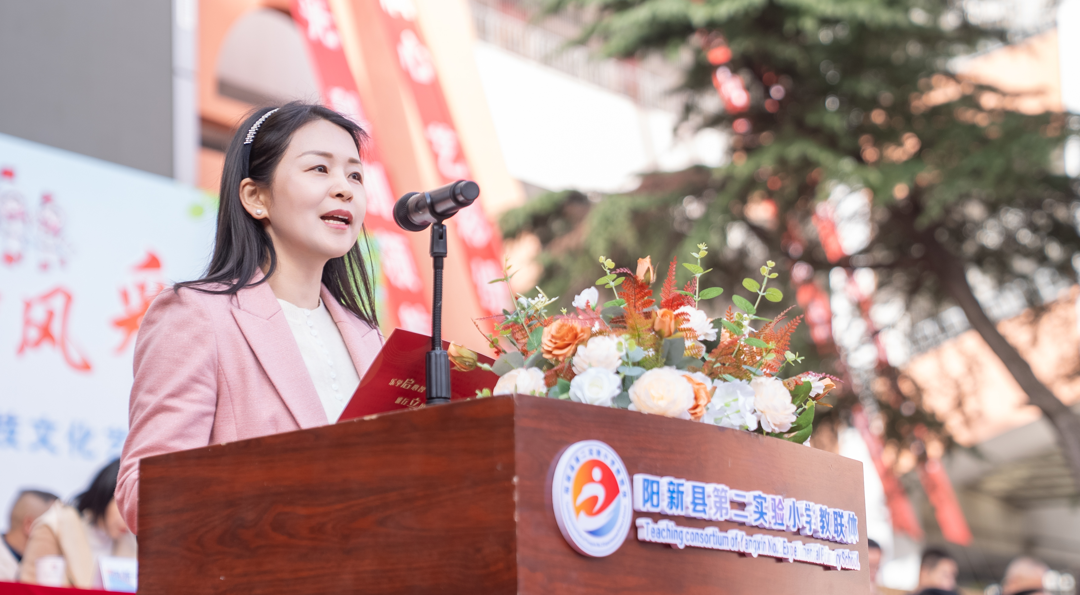 实验二小党总支书记汪海燕致欢迎辞说,此次体育科技文化艺术节既是学校四十年办学成果的集中展示,更是奔向未来征程的全新启航,学校将坚持以体健魄、以科探新、以文化人、以美润心,彰显“双减”政策下的育人成效。