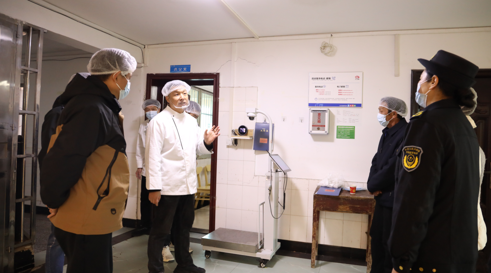 参观现场,代表们听取了学校食堂管理人员关于食堂运营管理的全面介绍。在食堂负责人的引导下,代表们深入食堂“腹地”,实地探访了原料储存仓库、烹饪操作间、餐具清洗消毒间等关键区域。大家仔细查看了环境卫生状况、各类加工设备的清洁维护、食品留样记录以及“明厨亮灶”监控系统的运行情况。每到一处,代表们都认真询问、细致观察。