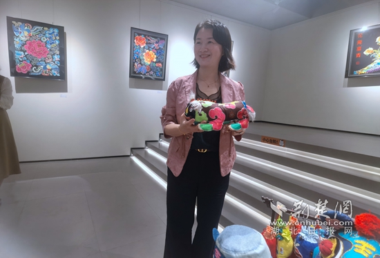 图为武昌区文化和旅游局副局长季玉红推介阳新布贴。田城/摄