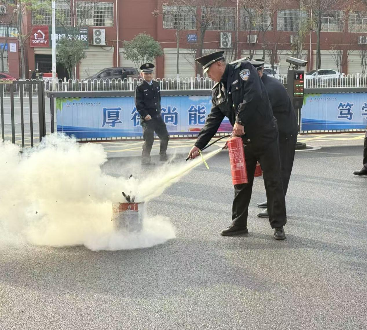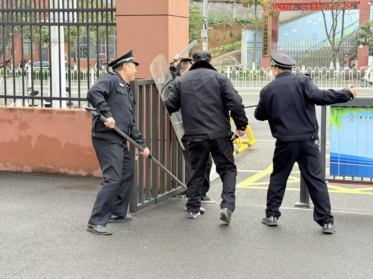 12月13日,黄石市第一高级技工学校联合湖北一安驹保安服务有限公司开展校园反恐防暴及消防应急综合演练,阳新县9个最小应急单元共35人参演,辖区民警、行业代表等参与督导观摩。