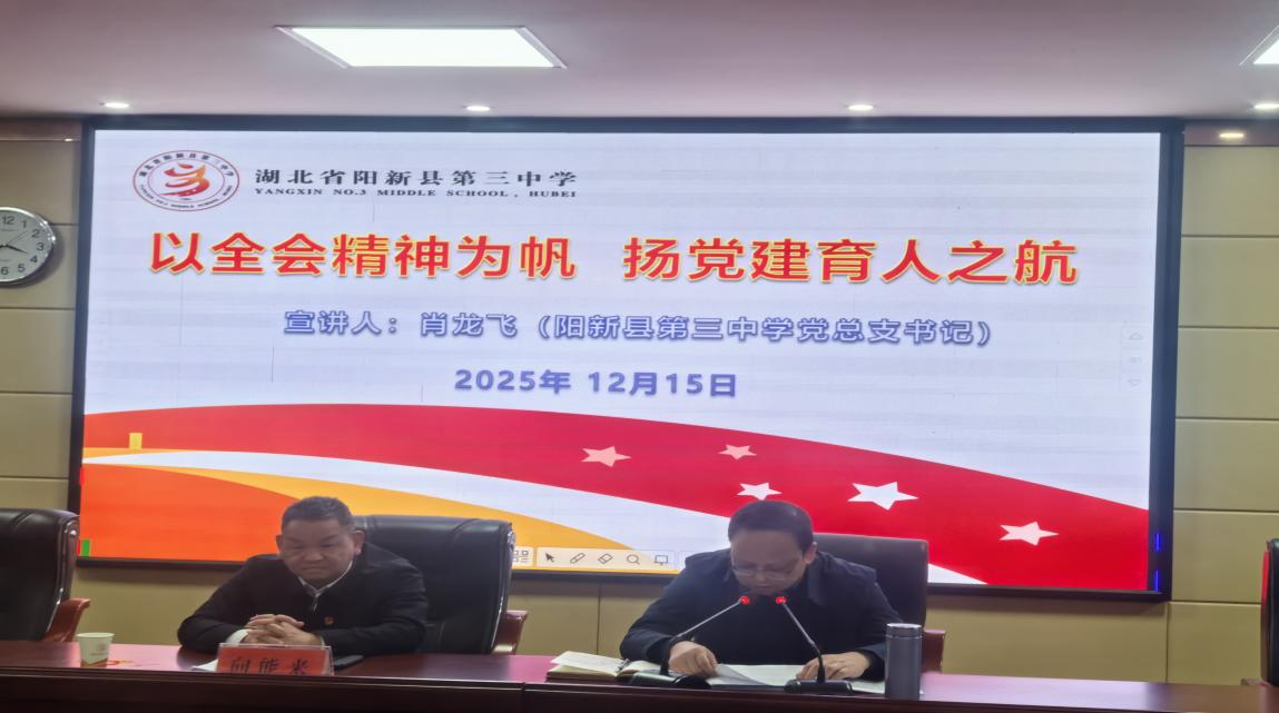 12月15日下午,阳新县第三中学召开党的党的二十届四中全会精神宣讲报告会,深入学习领会全会精神,引导全体党员干部统一思想、凝聚共识。