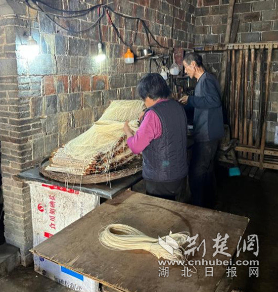 阳新老人制作油面 。(游客 汤畅/摄)