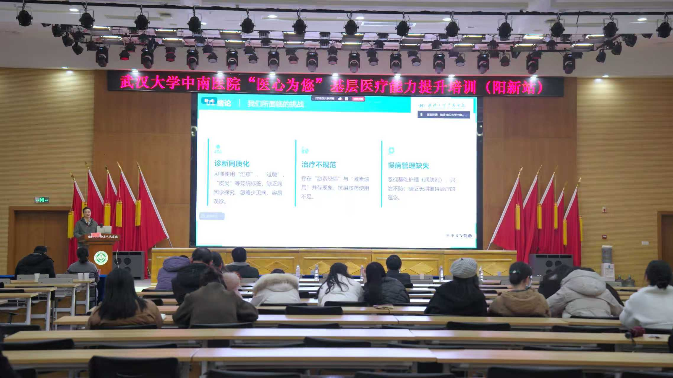 与此同时,在城东院区手术室,一场妇科肿瘤手术演示正在进行,成为一堂生动直观的临床教学课。学术报告厅内,“医心为您”基层医疗能力提升培训通过技术平台进行实时转播,围绕蛋白尿临床诊断、突发性耳聋诊治、过敏性皮肤病基层诊疗等实用课题,武汉大学中南医院的专家为阳新医务人员带来了前沿又贴近实战的分享。