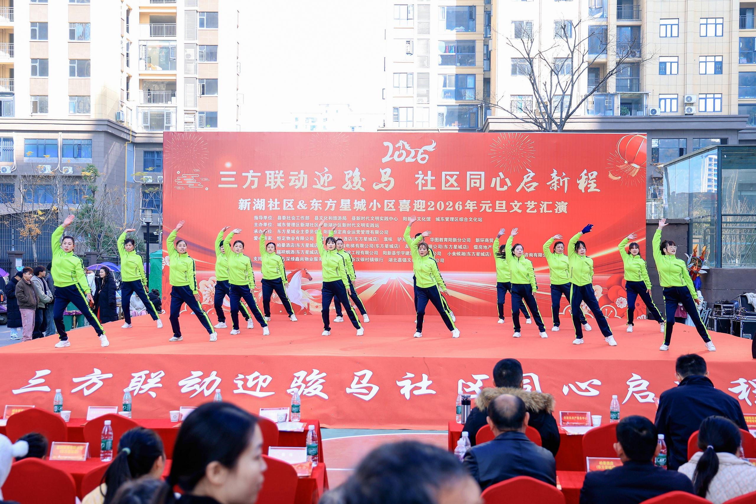 28日上午,城东管理区新湖社区新时代文明实践站携手东方星城小区业主委员会、恒定商业运营管理有限公司,举办“三方联动迎骏马・社区同心启新程”元旦文艺汇演活动。活动得到多家爱心企业的鼎力赞助,为辖区居民送上了一场集文艺盛宴与惊喜福利于一体的年味狂欢。