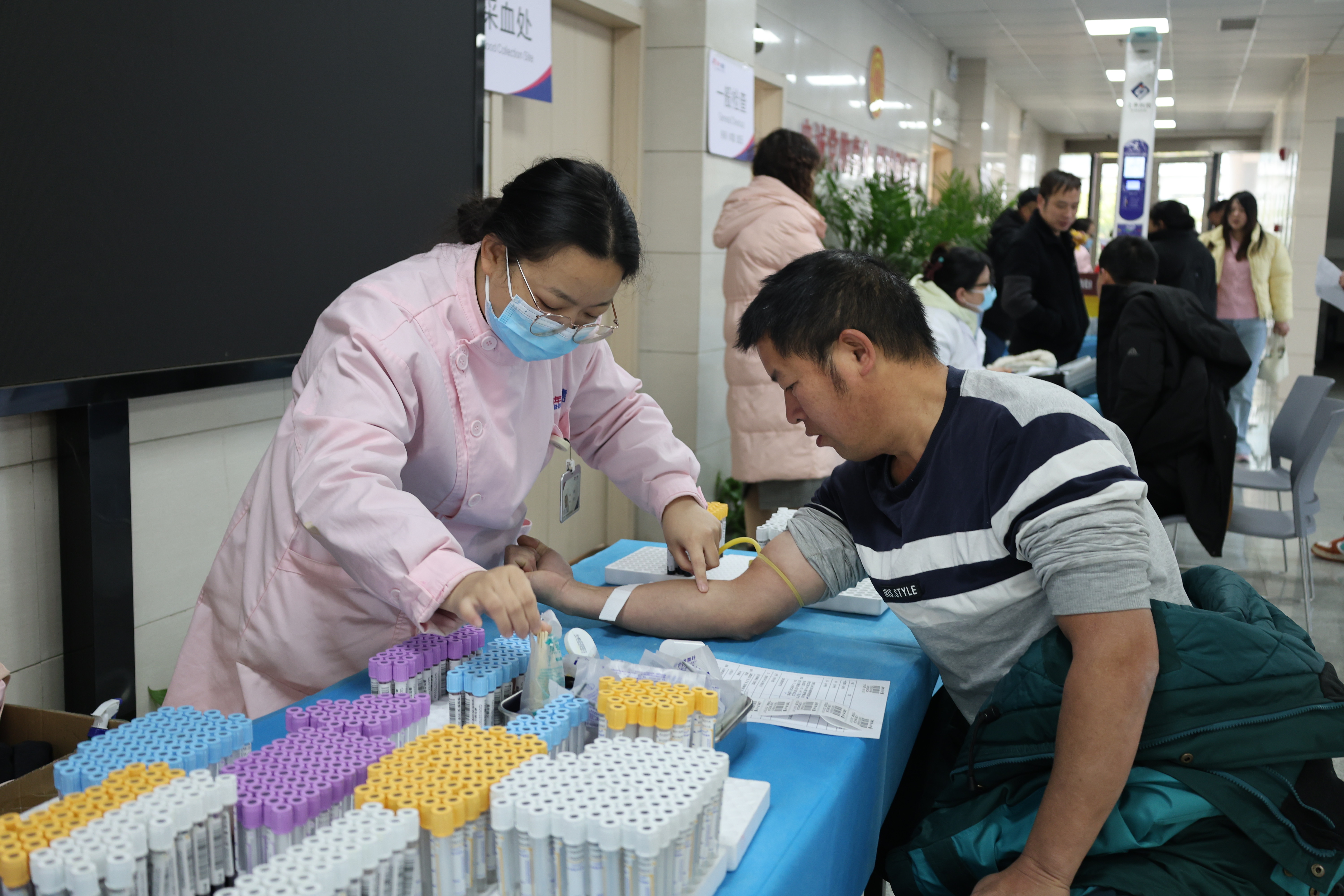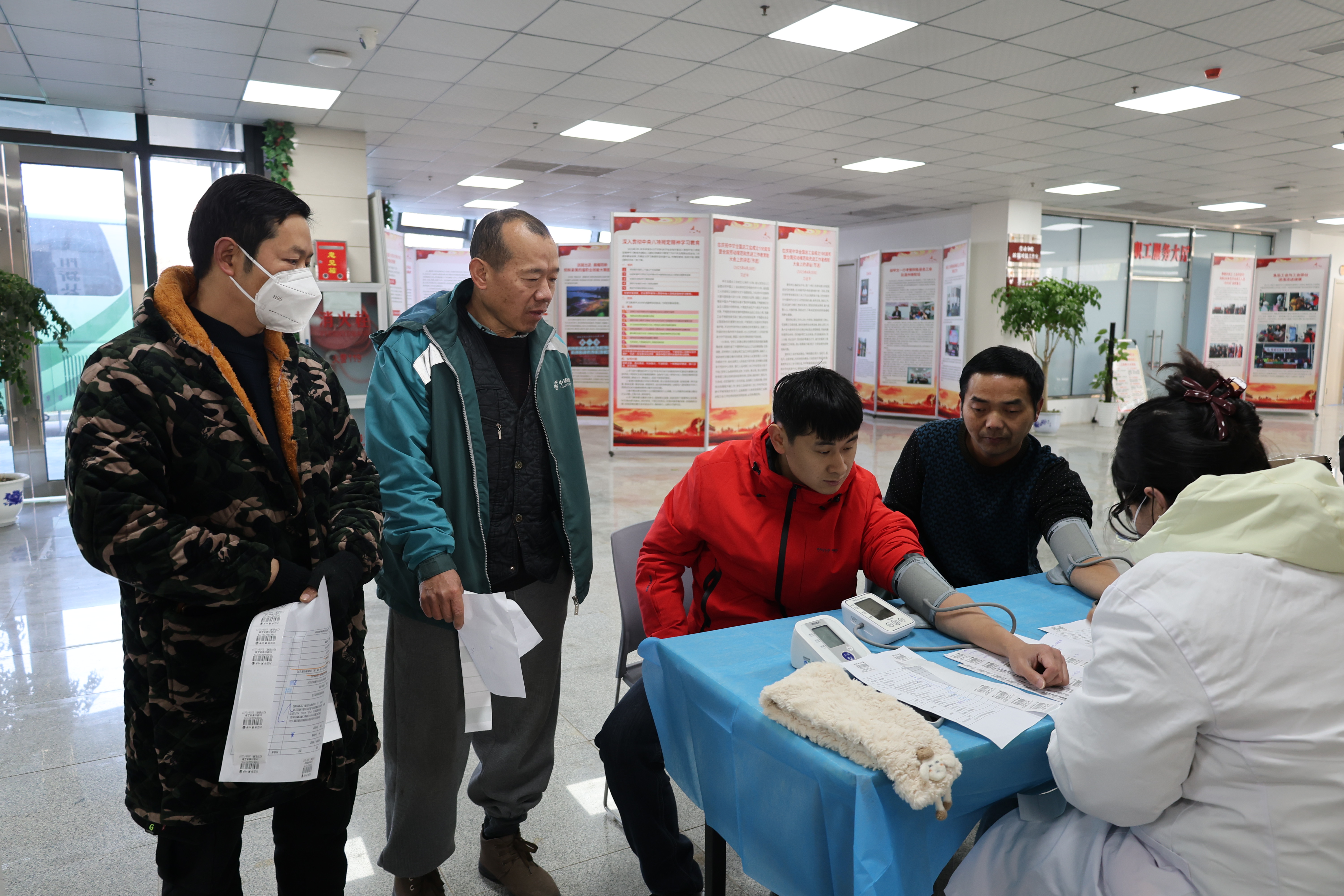 活动现场,职工们有序排队,依次进行身高、血压、心电图、B超、血脂检测等34项健康检查。项目涵盖临床检查、实验室检查、特殊检查及肿瘤标志物筛查,全方位关注新业态劳动者的身体健康状况。