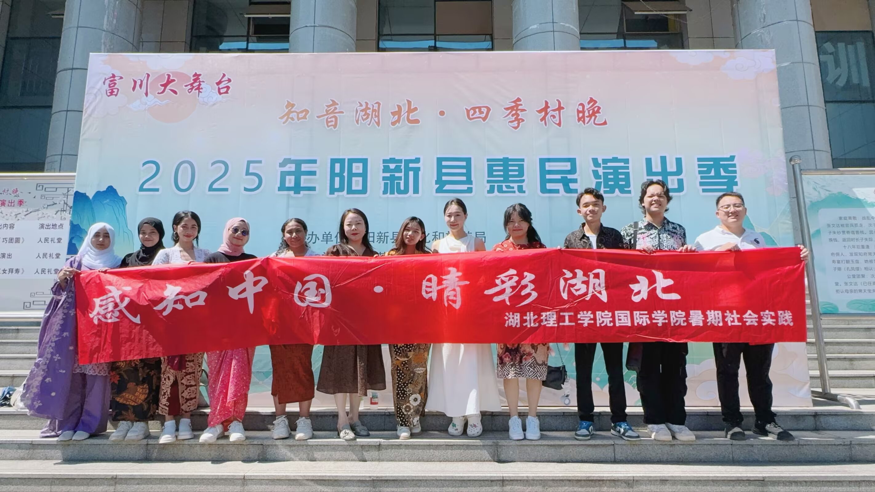 “文惠卡”演出季期间,不仅深受当地戏迷们的喜爱,还迎来了一批特殊观众——湖北理工学院国际学院的师生们。来自印度尼西亚、巴基斯坦的留学生们现场观摩了演员们从化装到展演,同时还亲身体验戏曲服装及穿戴。理工学院的老师黄亚表示:能带着国外学生们深入基层体验实践,了解基层百姓文化,对当今的青少年们尤为珍贵。