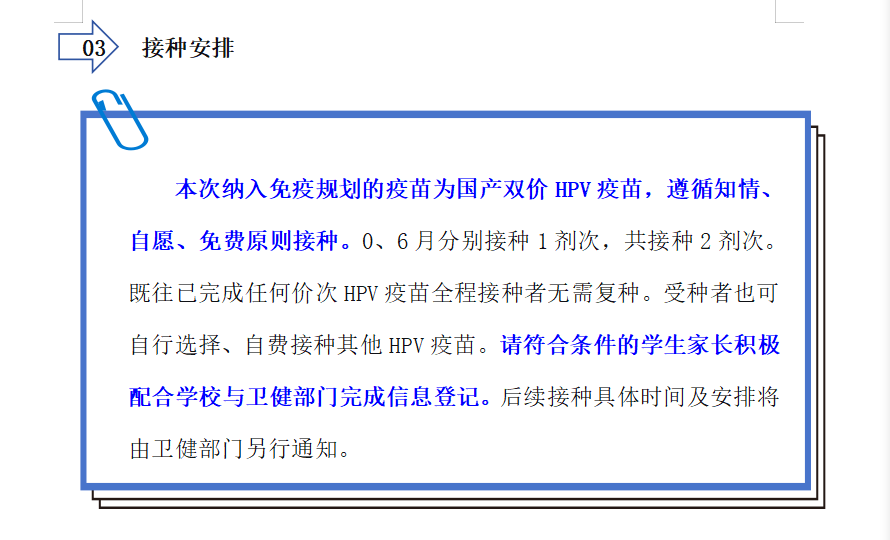 孩子健康成长是学校、家庭和社会共同的责任,接种HPV疫苗能让孩子受益终生。让我们携起手来及时接种疫苗,为孩子健康成长合力护航,给孩子一个健康美好的未来!