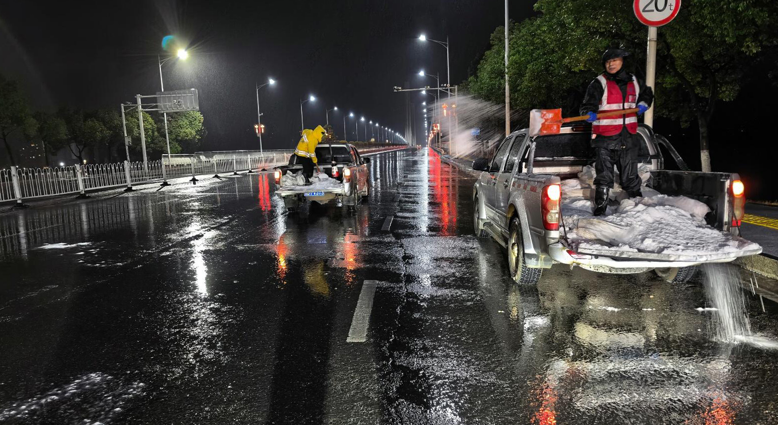 20日凌晨,在八一大桥、莲花湖大道、人行天桥等易结冰积雪区域,环卫服务公司第一时间响应,迅速组建应急作业队伍,采用“机械作业+人工辅助”的高效清雪除冰模式,开展首轮撒盐作业。作业现场,身着反光警示服的工作人员驾驶撒盐机匀速行驶,对主干道进行全面播撒融雪剂,有效遏制路面结冰蔓延;针对机械作业无法覆盖的桥面人行道、坡道等结冰死角,工作人员不畏严寒,手持工具逐点清理,确保清雪除冰无死角、全覆盖。截至21日清晨,累计出动300余人次,8台巡查车,撒盐10余吨。