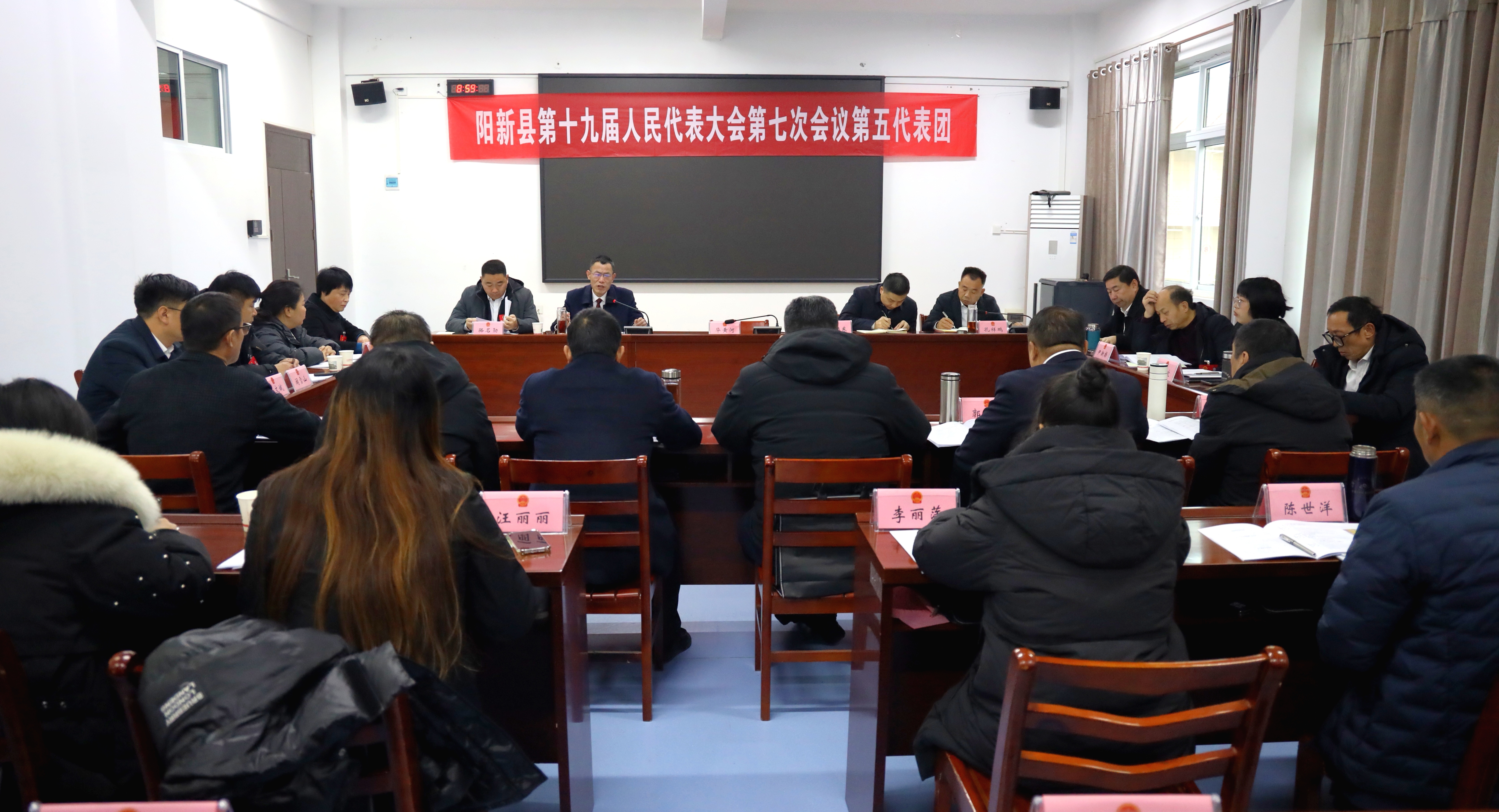 在人大第六代表团,副县长俞振华与来自排市镇、洋港镇、率洲管理区的人大代表,围绕百洞峡4A景区创建、交通基础设施建设、校园霸凌防治以及农旅融合发展等方面展开讨论。