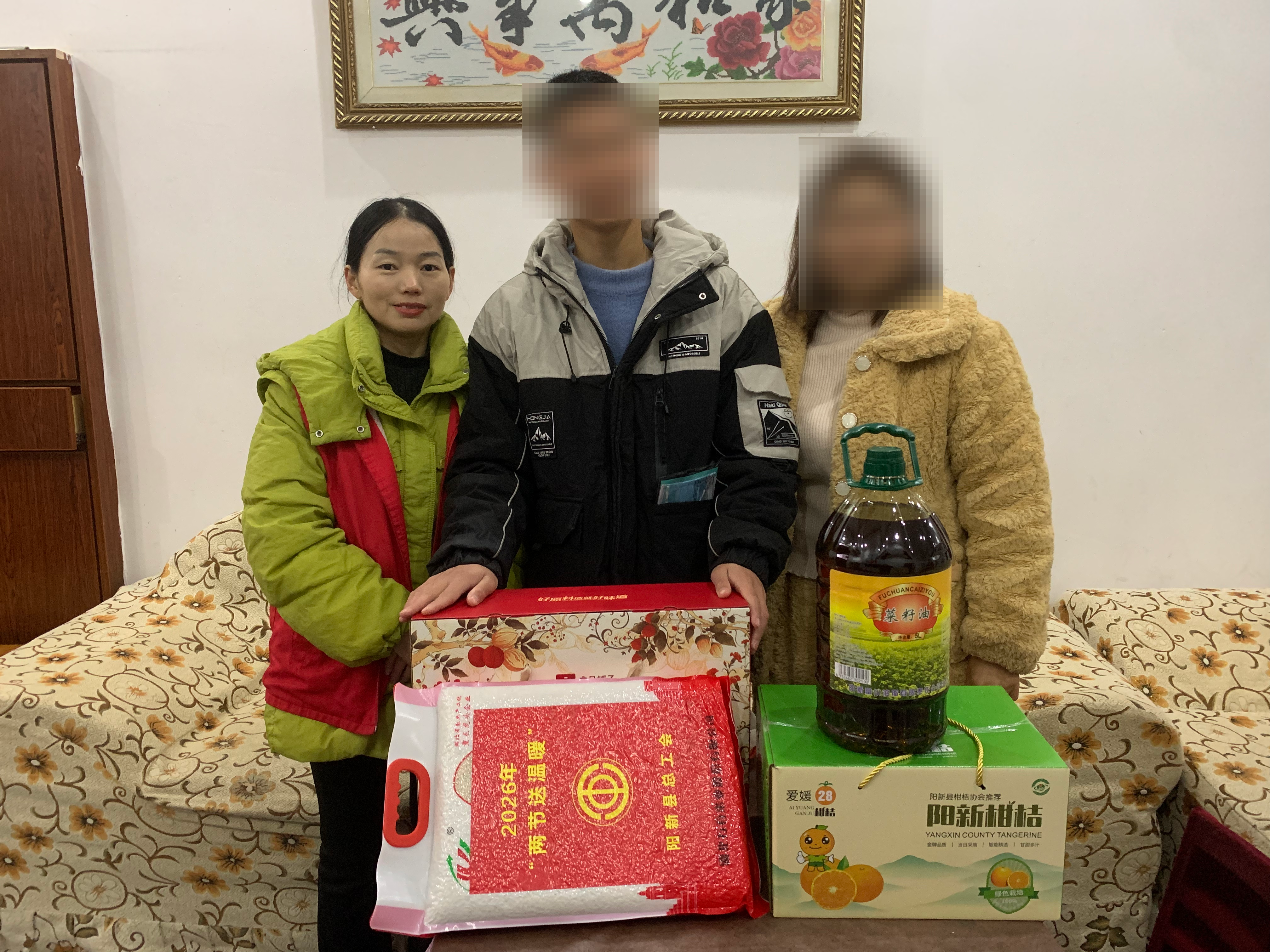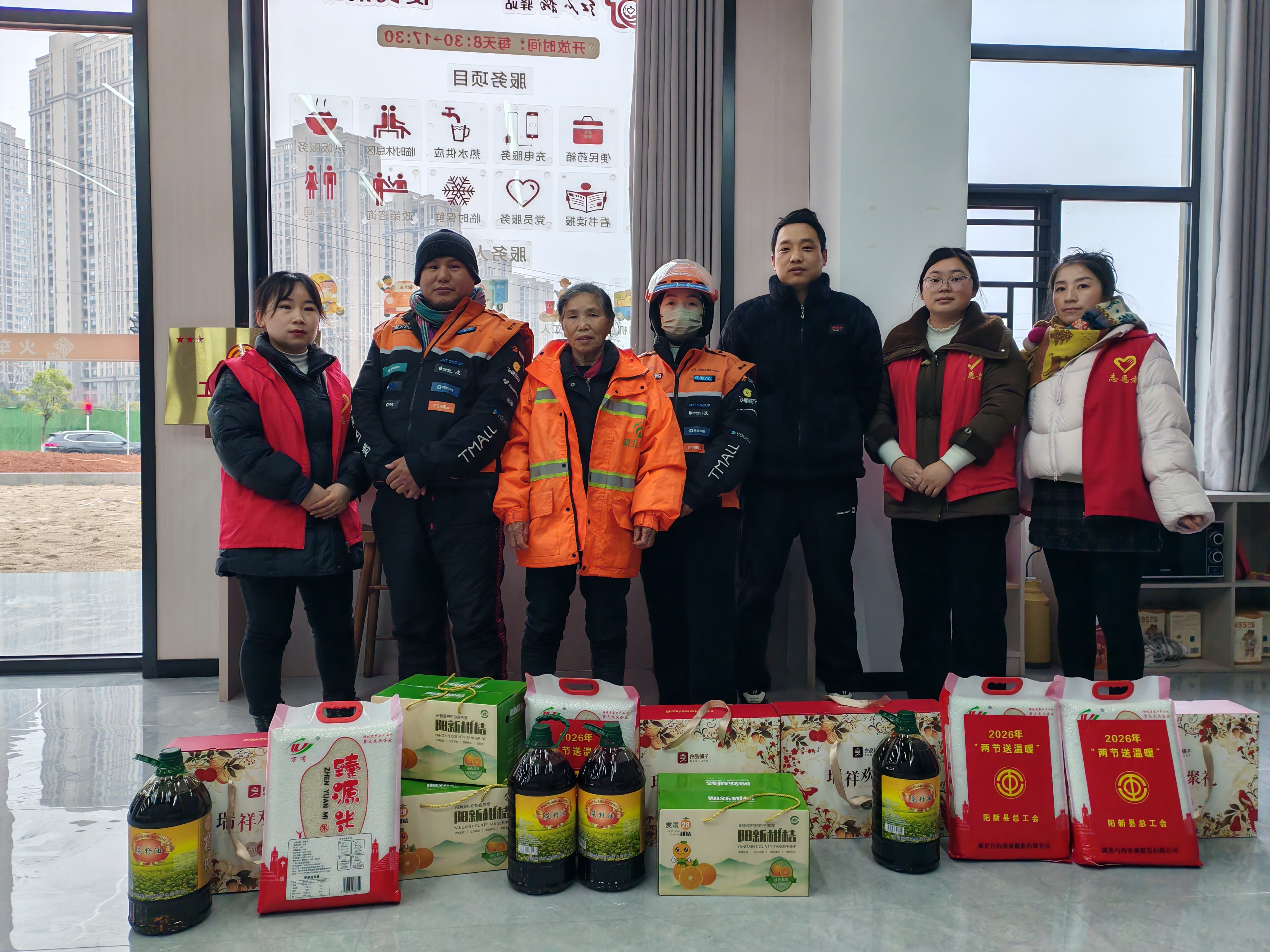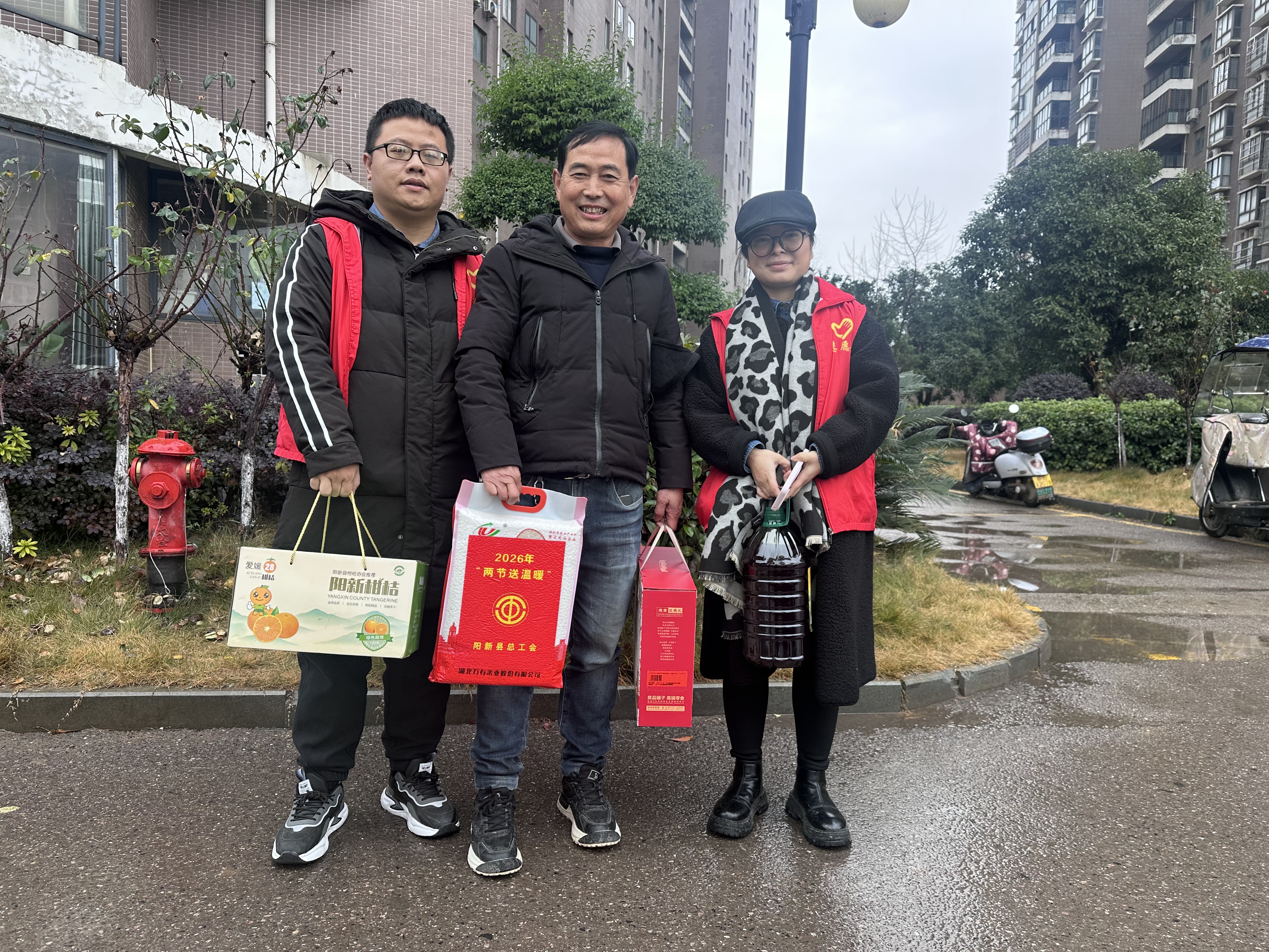 凛冬有暖,关怀随行。1月30日,阳新县总工会联合经济开发区火车站社区红石榴工会驿站开展“新春送温暖 关爱暖民心”主题活动,将20份爱心大礼包精准送到辖区新就业群体、户外工作者手中。礼包内含米、油等生活必需品、良品铺子新春礼盒及阳新本地柑桔,兼顾实用与心意。工作人员与大家面对面谈心,倾听心声、了解需求,以实际行动为一线劳动者送上关怀,让他们在寒冬中感受党和政府的温暖与家乡温情。
