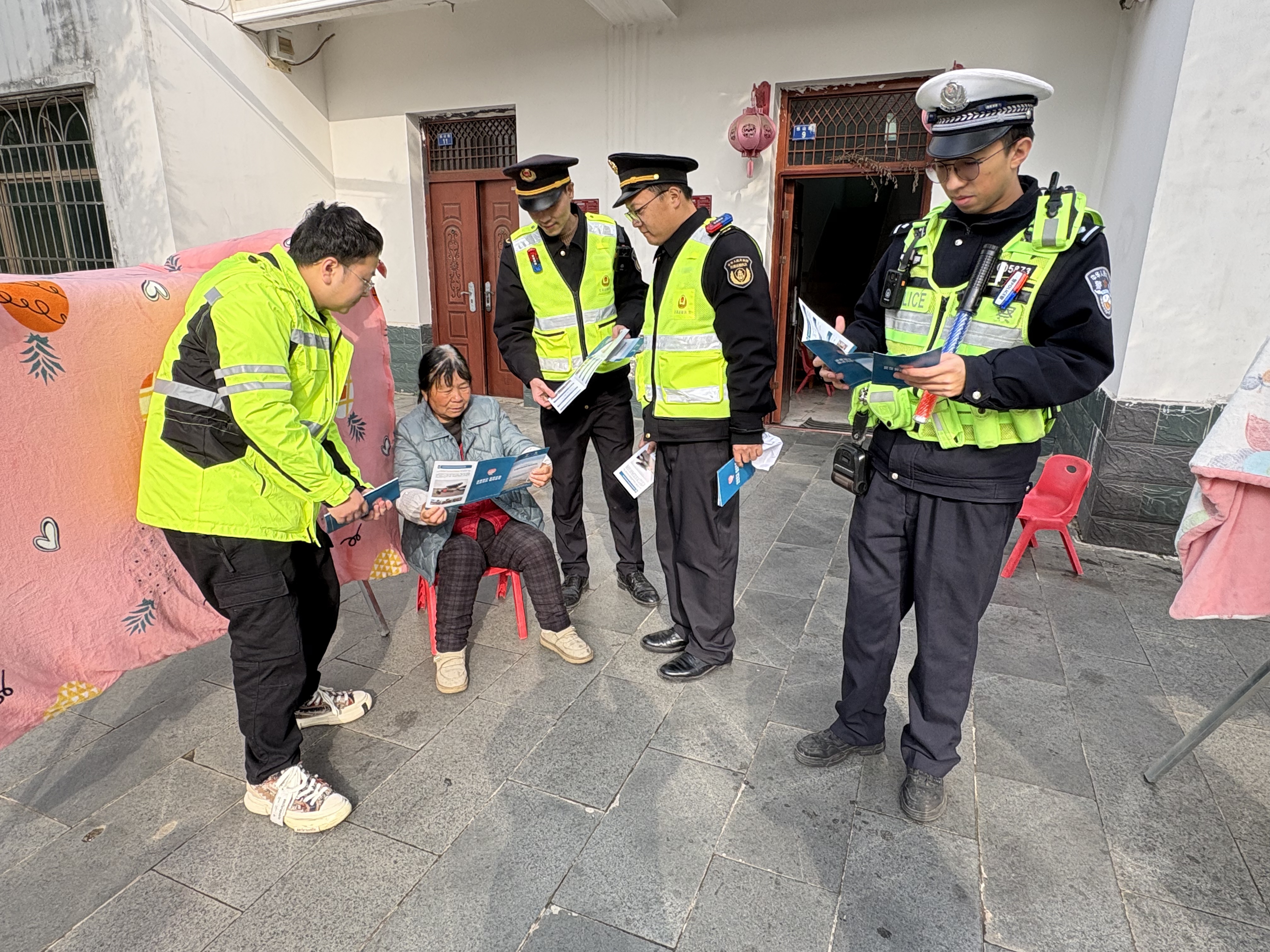 活动中,路政执法人员立足专业职责,解读“公路法”等相关法律法规,重点宣讲行人禁入高速、禁止损坏公路附属设施、车辆故障应急处置等核心内容,用“法条+案例”的方式明确违规后果;交警与高速运营单位工作人员协同补充交通违法查处、养护保障等相关知识,现场耐心解答村民关于高速通行、应急求助等方面的疑问。宣传组还深入农户家中、田间地头,用方言化表达向村民普及安全常识,确保宣传覆盖到位。此次活动共发放资料50余份,解答咨询10余人次,覆盖村民100余人,有效提升了公众安全意识与法治观念。