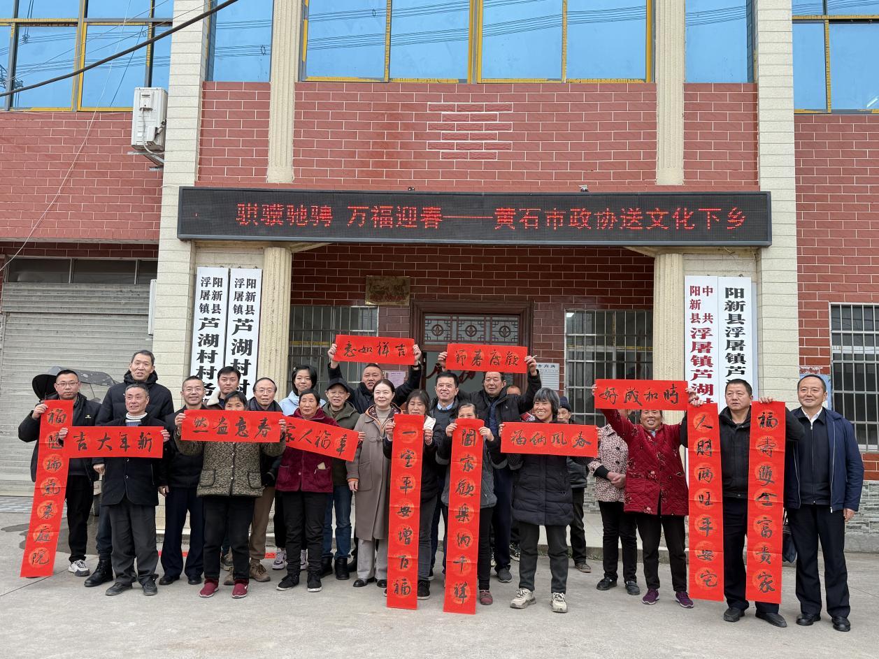 新春将至,年味渐浓。2月4日下午,浮屠镇芦湖村村委会翰墨飘香、暖意融融。在浮屠镇党委、政府的积极对接与配合下,黄石市政协“送文化下乡——送春联”活动在此温情举行。市政协书画名家及机关工作人员一行十人深入基层,与我镇干部一道,将浓浓的年味和美好的祝福通过笔墨丹青送到村民家门口,为即将到来的龙年春节增添了喜庆祥和的文化氛围。