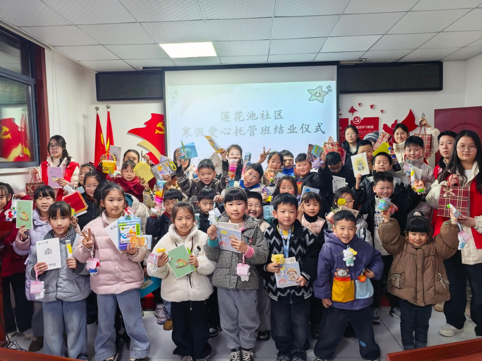 2月6日下午,阳新兴国镇莲花池社区活动室内暖意融融、欢声阵阵,由社区团支部、工会、关工委、妇联联合举办的寒假“爱心托管班”结业仪式在此温情落幕。志愿者与小朋友们齐聚一堂,以创意协作游戏、成长影像回顾与温馨颁奖环节,为这段充实的时光画上圆满句号。