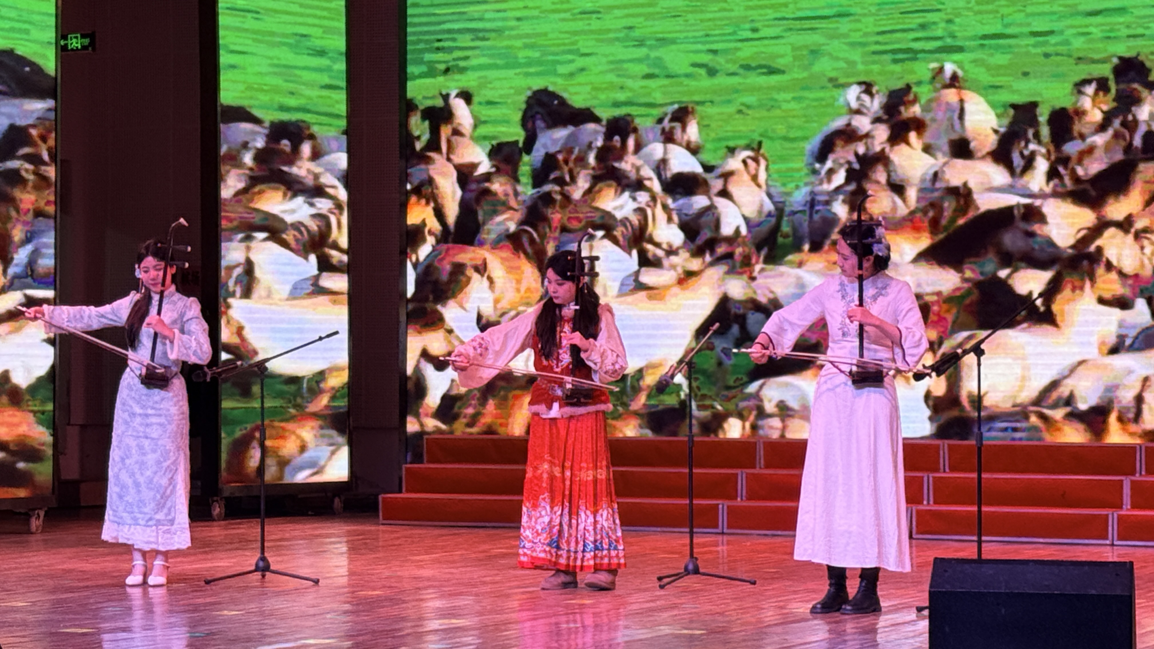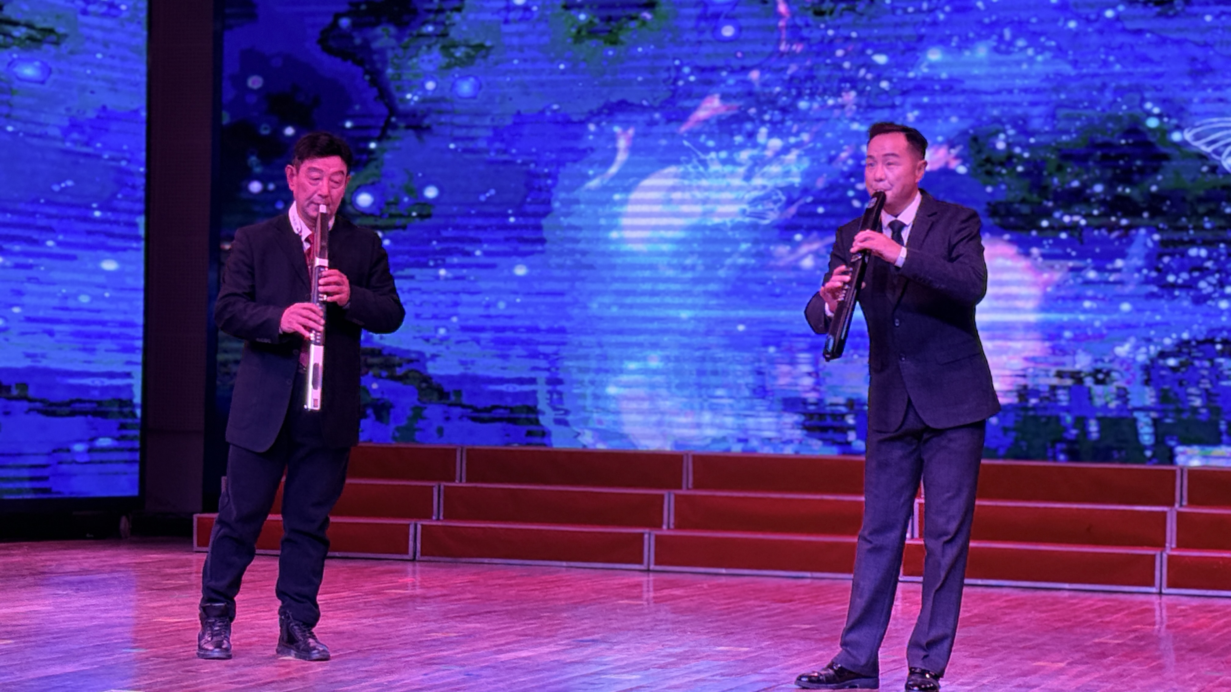 晚会节目丰富,形式多样。爵士舞《我最红》活力开场,点燃现场气氛;女声独唱《阳新是我心中最美的地方》抒发家乡情怀;电吹管二重奏《梁祝》、民乐器乐合奏《战马奔腾》《赛马》尽显艺术魅力。此外,经典曲目串烧、吉他独奏、小提琴独奏轮番上演,红歌联唱传递家国情怀,现场掌声不断。